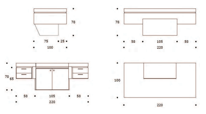 Dimensioni: larghezza 220 cm, altezza 78 cm, profondità 100 cm