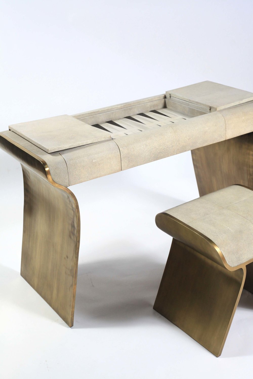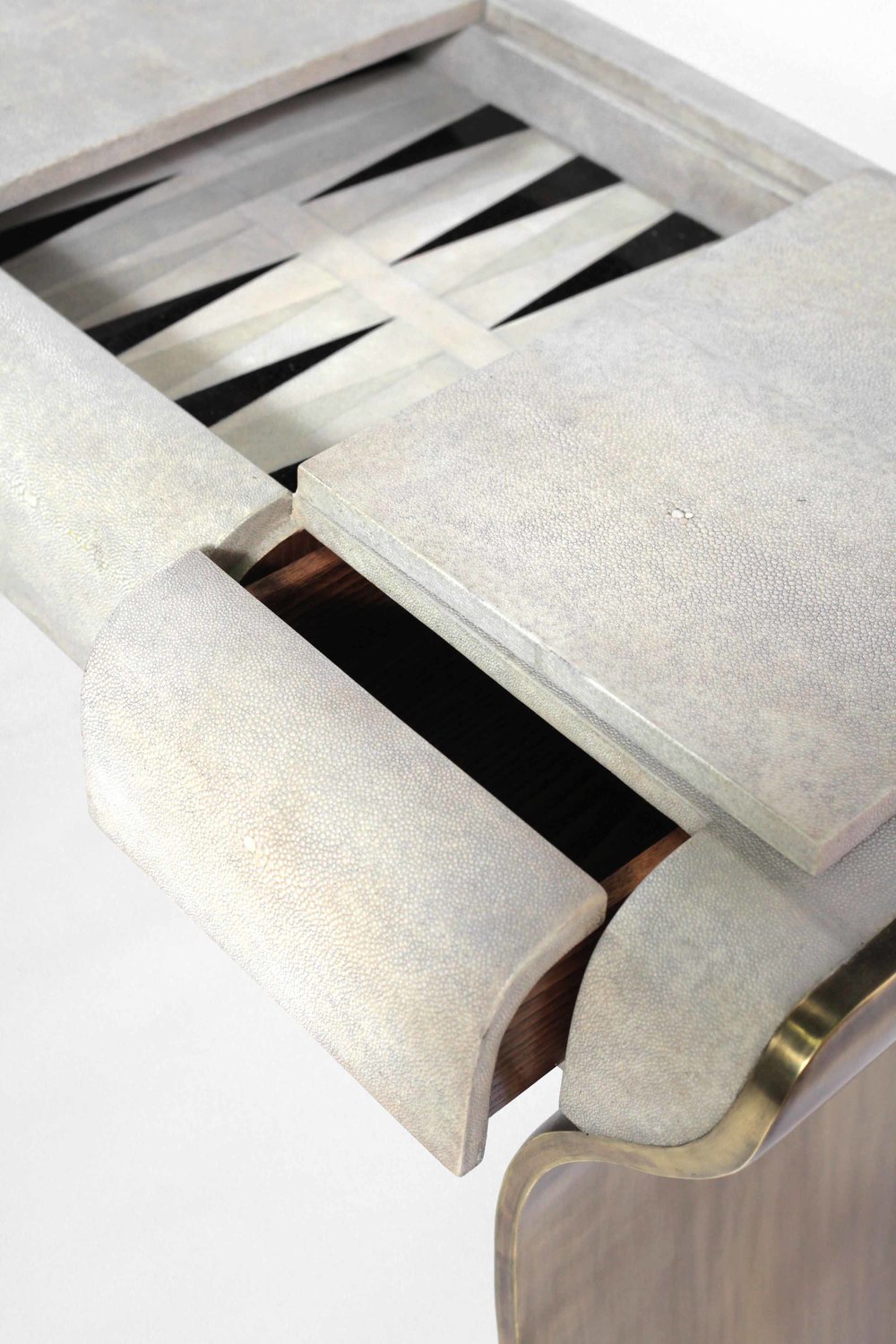 The Dandy Writing Game Desk is the ultimate luxury piece of furniture. With multiple compartments and purposes, one can use this piece as a work surface or convert this into a backgammon game table. Pair this with its matching stools.