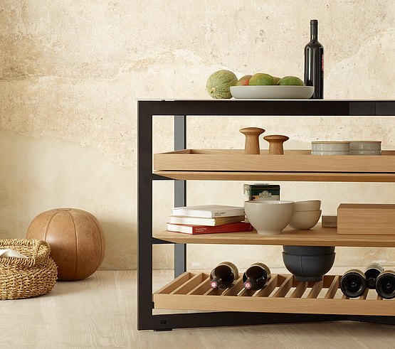 bulthaup b Solitaire forms the foundation for your living space, creating both a center of attention and openness. It was created to address your everyday needs. Positionable anywhere in the room and accessible from all sides, bulthaup b Solitaire brings living spaces, such as the living room and dining area, together.