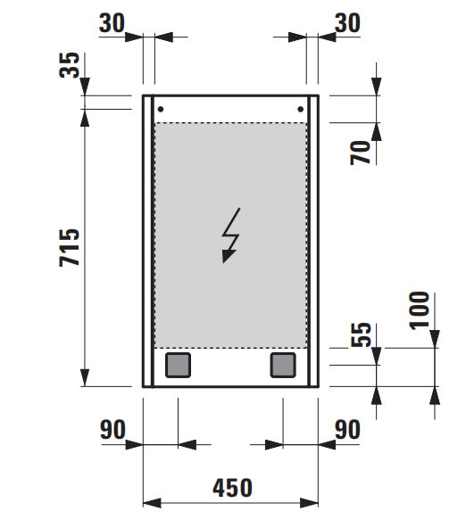 DIMENSIONS: 450 x 150 x 750 mm (length, width, height)