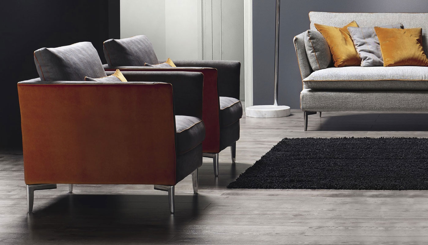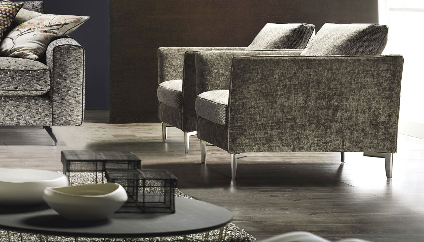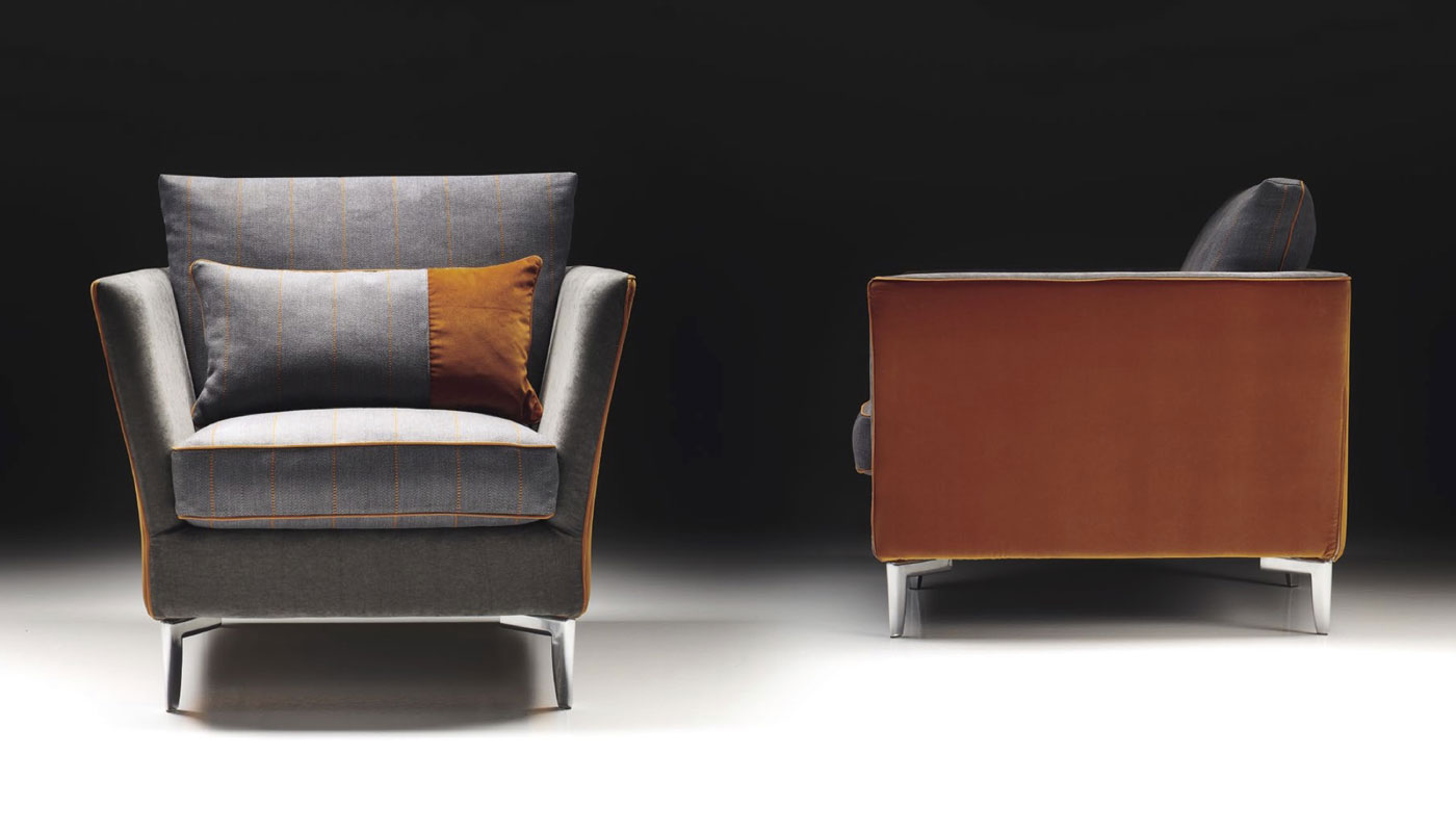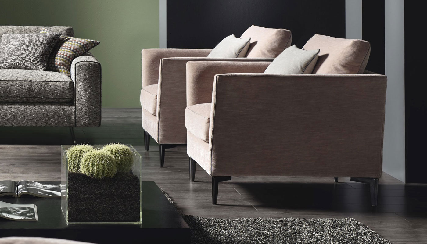 Connubio armonico ed equilibrato tra il divano e la poltrona Little Joy. Forme familiari rivestite con tessuti naturali rafforzano un’identità fresca e informale.