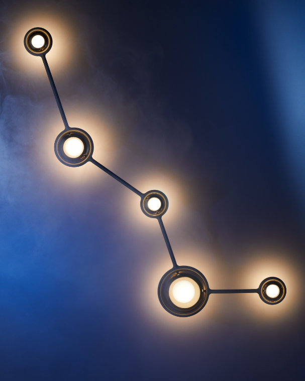 The Grand Central Terminal, with its expansive celestial ceiling mural, is the perfect space to house the Constellation collection uplifting visitors from their daily commute to an ethereal spatial experience. The collection offers a ceiling lamp, a wall sconce and a floor lamp, each representing Cassiopeia, Orion's Belt and Polaris respectively. Hand-crafted metal connects the luminaires in each unique piece, allowing onlookers to feel as if they are staring up into a starry, night sky.Each piece is modular and offered in bespoke configurations. Wherever displayed, the light becomes the focal point of the space, evoking awe and wonder.