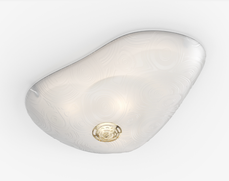 The new Sushi ceiling lamp is an evolution of Campana Brothers' classic Sushi collection. Originally produced with offcuts of carpet, rubber and EVA for their furniture pieces, this collaboration elevates it to crystal glass adding a new element of transparency and organicity. The irregular surface that covers its concave shape brings depth and dimension to the piece, showing new frontiers to the classic collection.