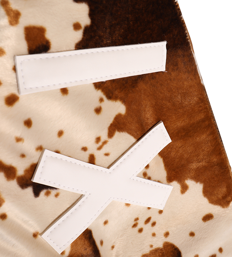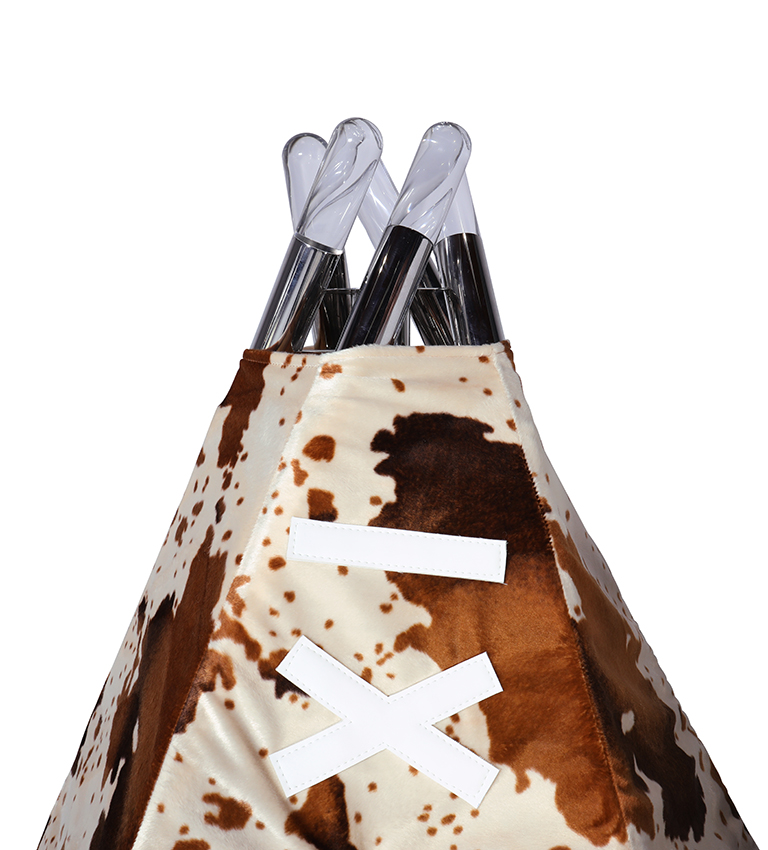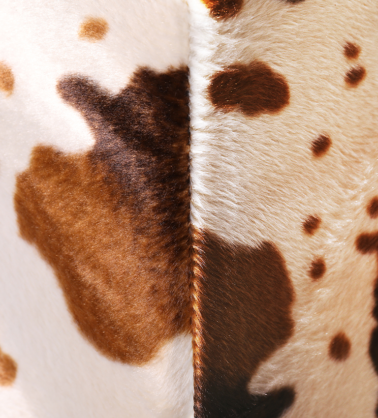 It is supported by a 5-pole structure with acrylic finishes with a covering in synthetic cow skin print, with peach skin texture.