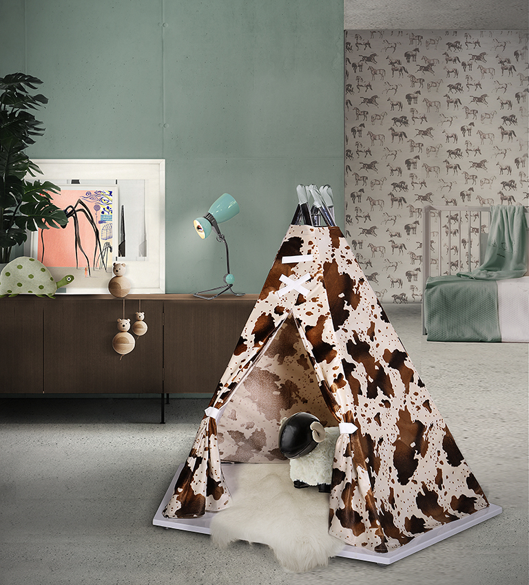 This kids’ teepee is a playroom inspired by the traditional indigenous tents. The Teepee Playground has a playful design influenced by the Disney princess Pocahontas and her free-spirited and highly spiritual personality. Kids will be drawn to this play tent because of the connection to nature that it inspires.