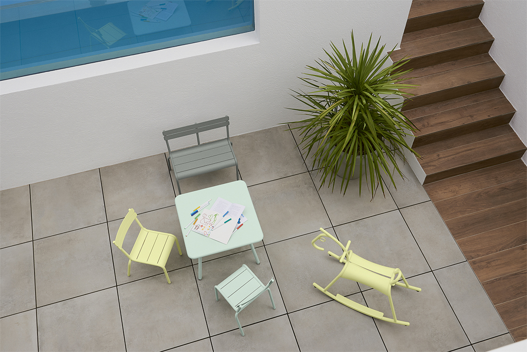Il prend aussi soin de la planète car il reprend les pièces et tubes existants des mobiliers Fermob et s'inspire de l'esthétisme de la collection iconique Luxembourg.