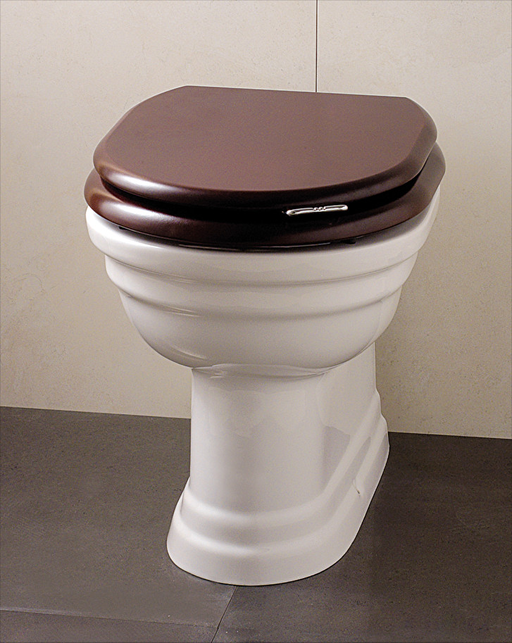 Essential lines shaped by sinuous retro-inspired mouldings represent the refined elegance of a flush-wall mounted w.c. pan for in-wall cistern in fine porcelain. It can be coordinated with a wide collection of seats of different materials and colours.