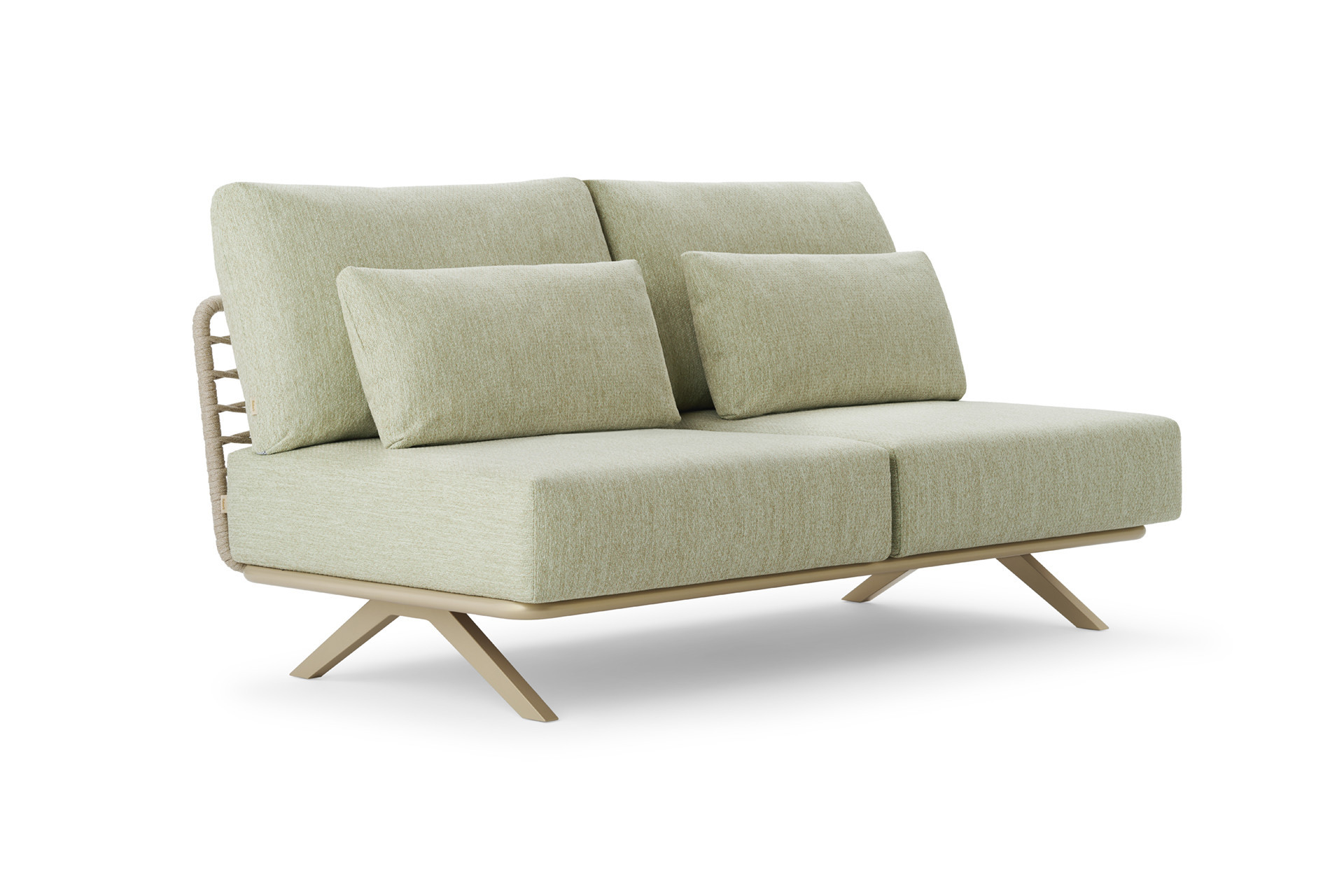 Elemento 2 posti in acciaio inox Aisi 304 e alluminio verniciato a polveri, intrecciato in Oval Trendyrope. Componente modulare della collezione Arman, un concept di design che consente di combinare i diversi elementi in modo armonioso e personale. La generosa e comoda seduta invita al relax, regalando una sensazione di comfort accogliente e conferendo un'eleganza contemporanea agli spazi circostanti. L'intera gamma è progettata sia per l'arredamento residenziale che per quello contract, sia per gli spazi outdoor che indoor.