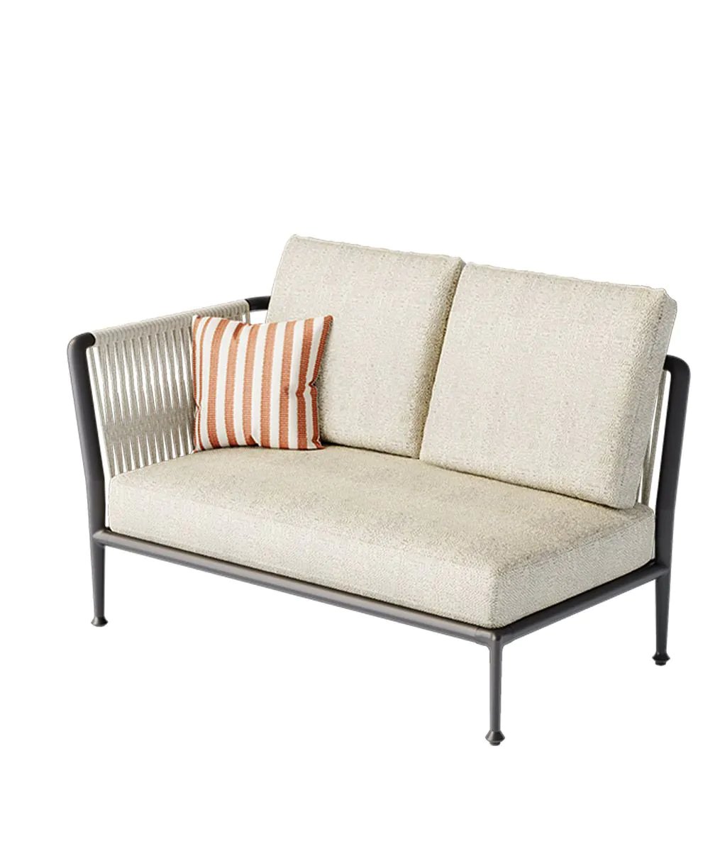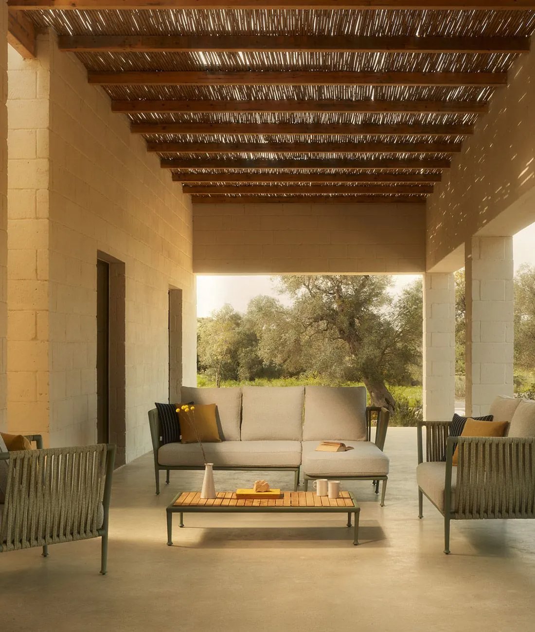 Bimaterica, in alluminio e corda, la collezione Treble si caratterizza per la leggerezza, la purezza delle linee, l’alta performance nell’utilizzo outdoor e il rigore estetico, qualità che la rendono facilmente adattabile a contesti urbani e residenziali. Quattro le finiture della struttura e dell’intreccio: grafite, salvia, syrah e sabbia. Oltre alle sedute modulari è disponibile anche un coffee table rettangolare con solido piano in teak.
