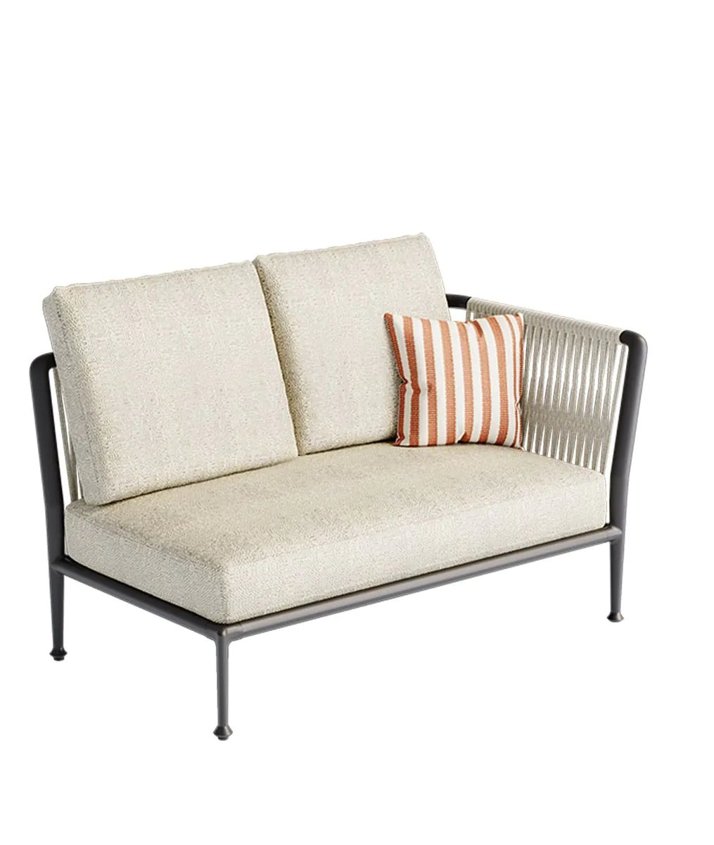 Bimaterica, in alluminio e corda, la collezione Treble si caratterizza per la leggerezza, la purezza delle linee, l’alta performance nell’utilizzo outdoor e il rigore estetico, qualità che la rendono facilmente adattabile a contesti urbani e residenziali. Quattro le finiture della struttura e dell’intreccio: grafite, salvia, syrah e sabbia. Oltre alle sedute modulari è disponibile anche un coffee table rettangolare con solido piano in teak.