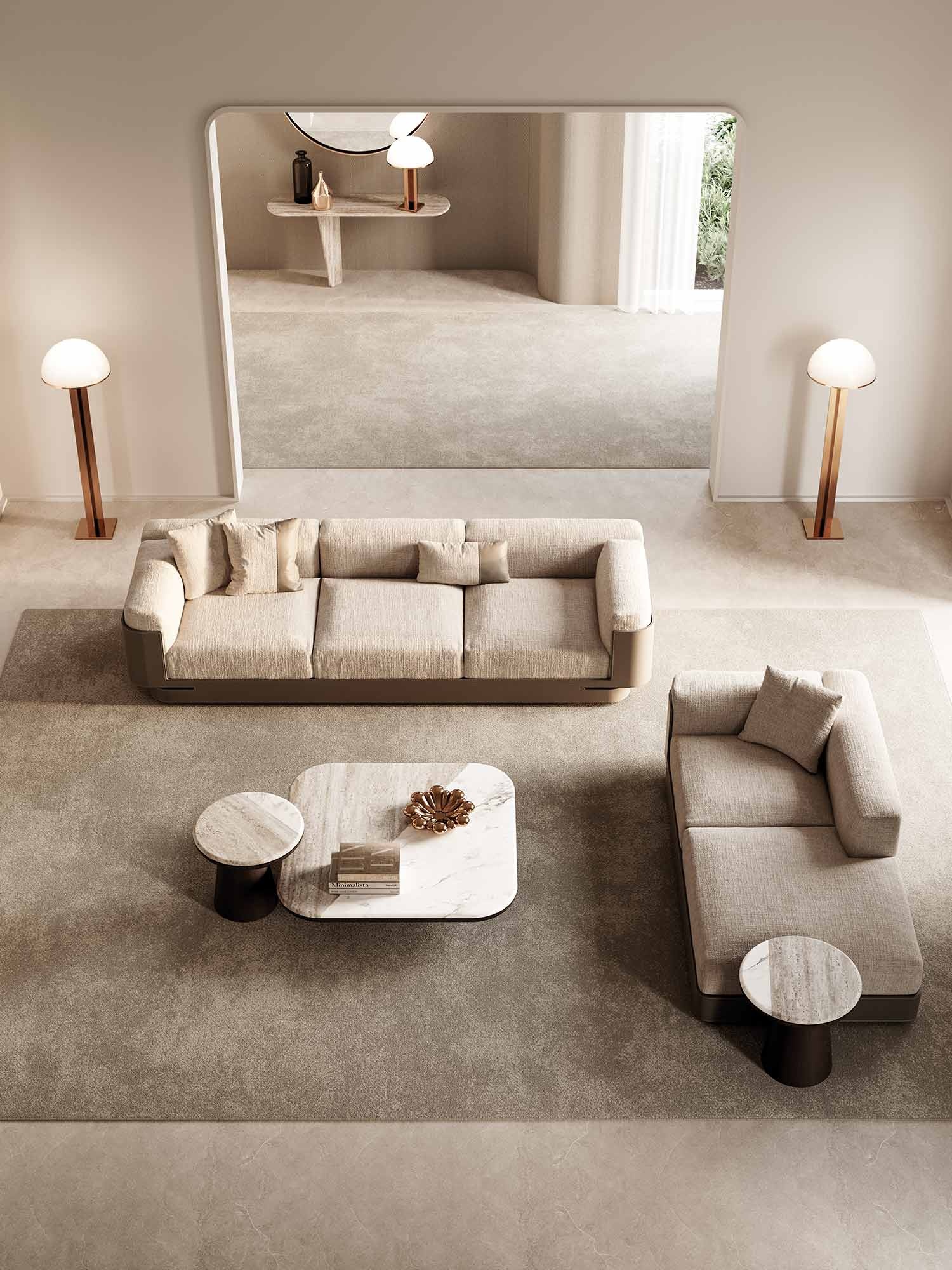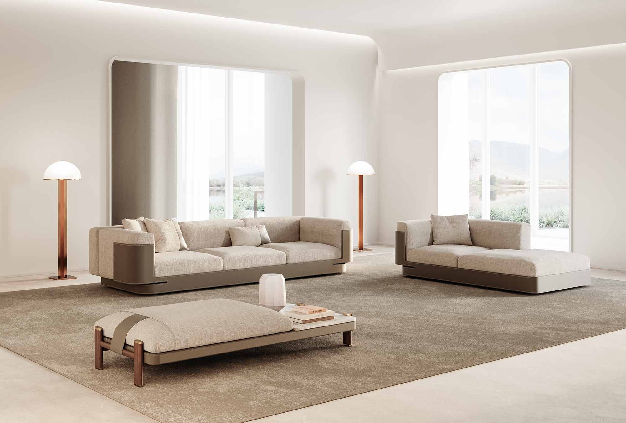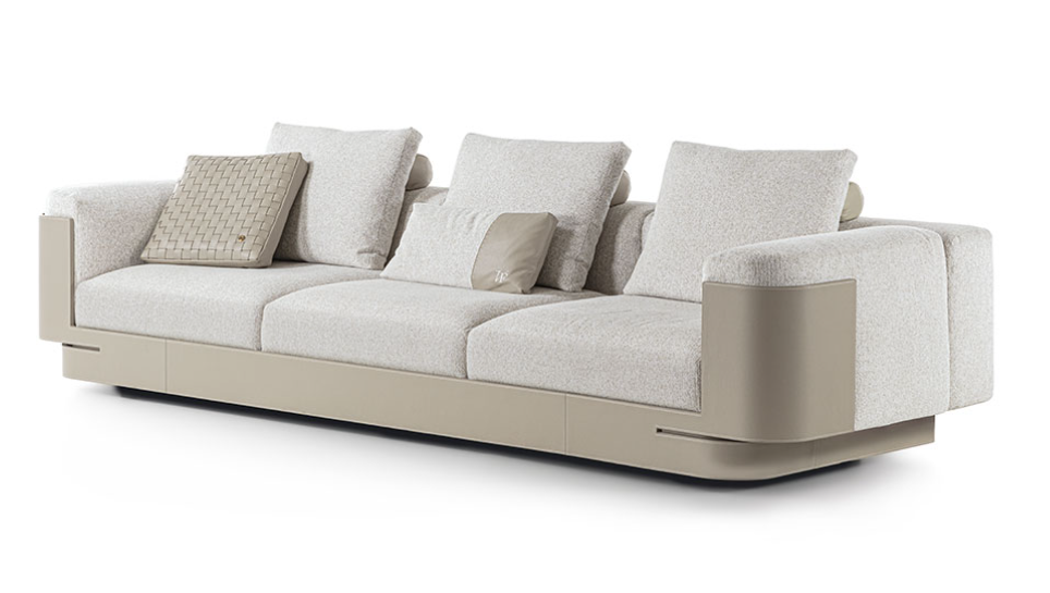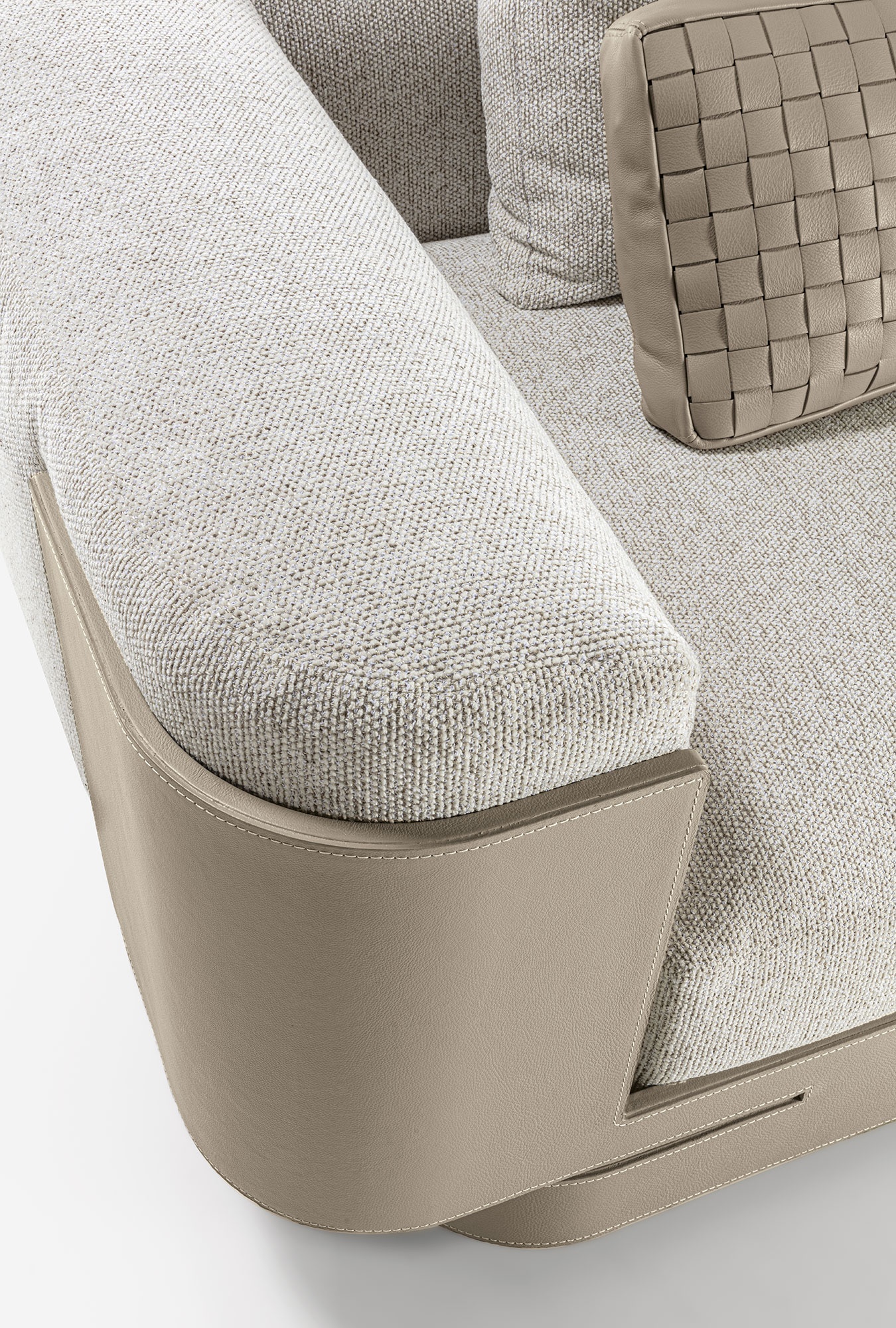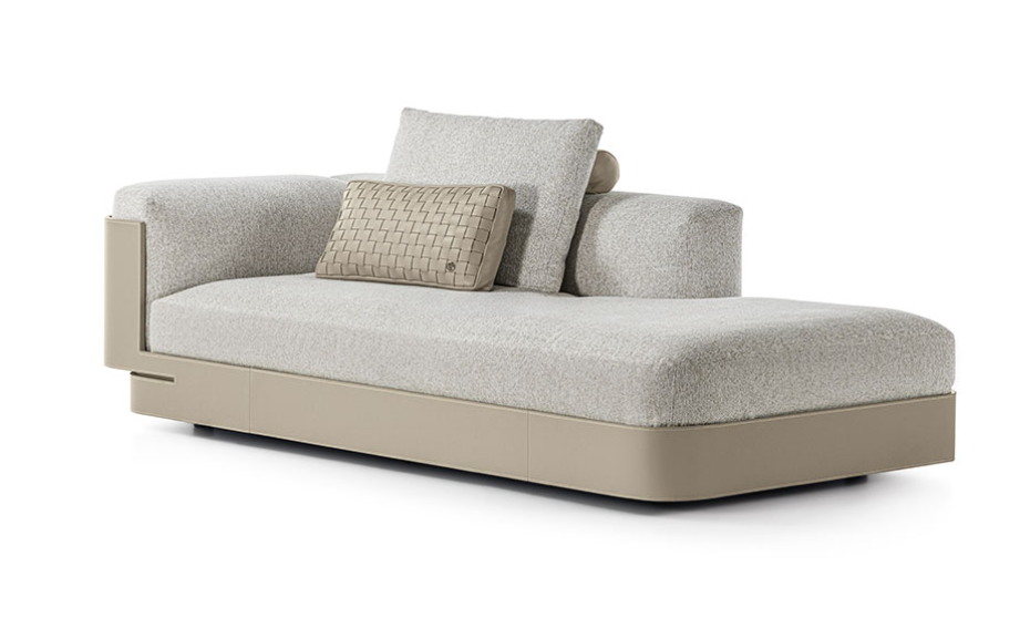 Il nuovo divano Necchi, design by Andrea Bonini, riflette l'estro creativo e la cifra progettuale dell'architetto, che mira a creare ambienti sensuali e lussuosi per reinterpretare, attraverso forme apparentemente semplici, una cura meticolosa per i dettagli. Il divano Necchi è caratterizzato da una solida base di forma geometrica, rivestita in pelle, che si estende nella parte anteriore del bracciolo come un'armatura di bellezza, instaurando un prezioso gioco di volumi e materiali. Il dettaglio di questi volumi sovrapposti, tra i morbidi cuscini di seduta e schienale e la base dalle forme rigorose,