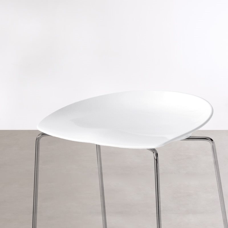 Sinuous and ergonomic seat that harmoniously combines with two different heights. Essential and filiform structure in steel rod.Stool with seat in glossy white or glossy black nylon. Stool with frame in chromed or lacquered steel rod.