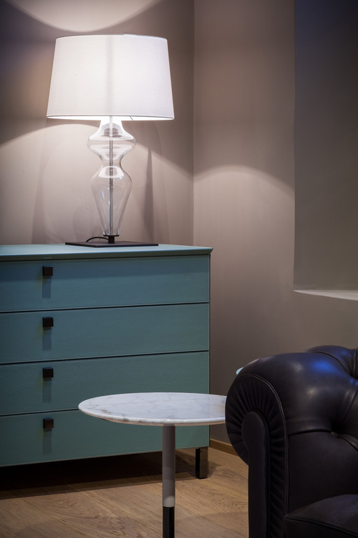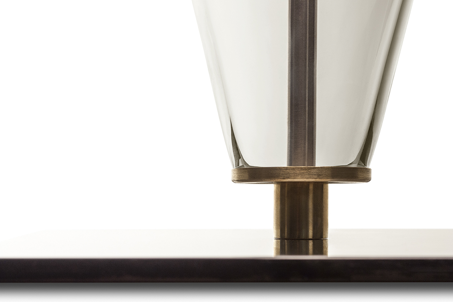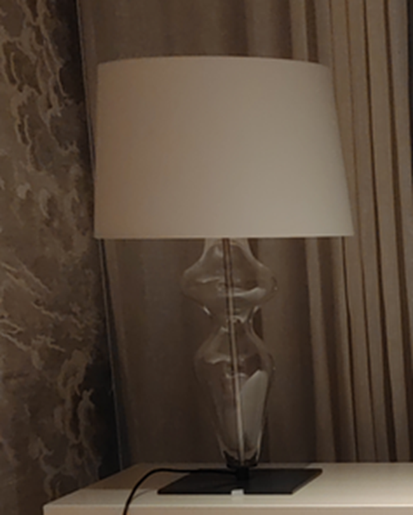 Holly燈具備有落地?zé)艉蜋厽艨晒┻x擇。外形為透明玻璃,描繪柔軟纖細(xì)的線條,輕巧勾勒出女性輪廓。支撐底座以噴漆金屬製成。底座和燈桿、以及燈桿和燈槽間的連接採用拋光黃銅。配有雙層燈罩,外層為帆布,內(nèi)層為PVC。落地?zé)舭姹镜腍olly是配有雙層燈罩的。