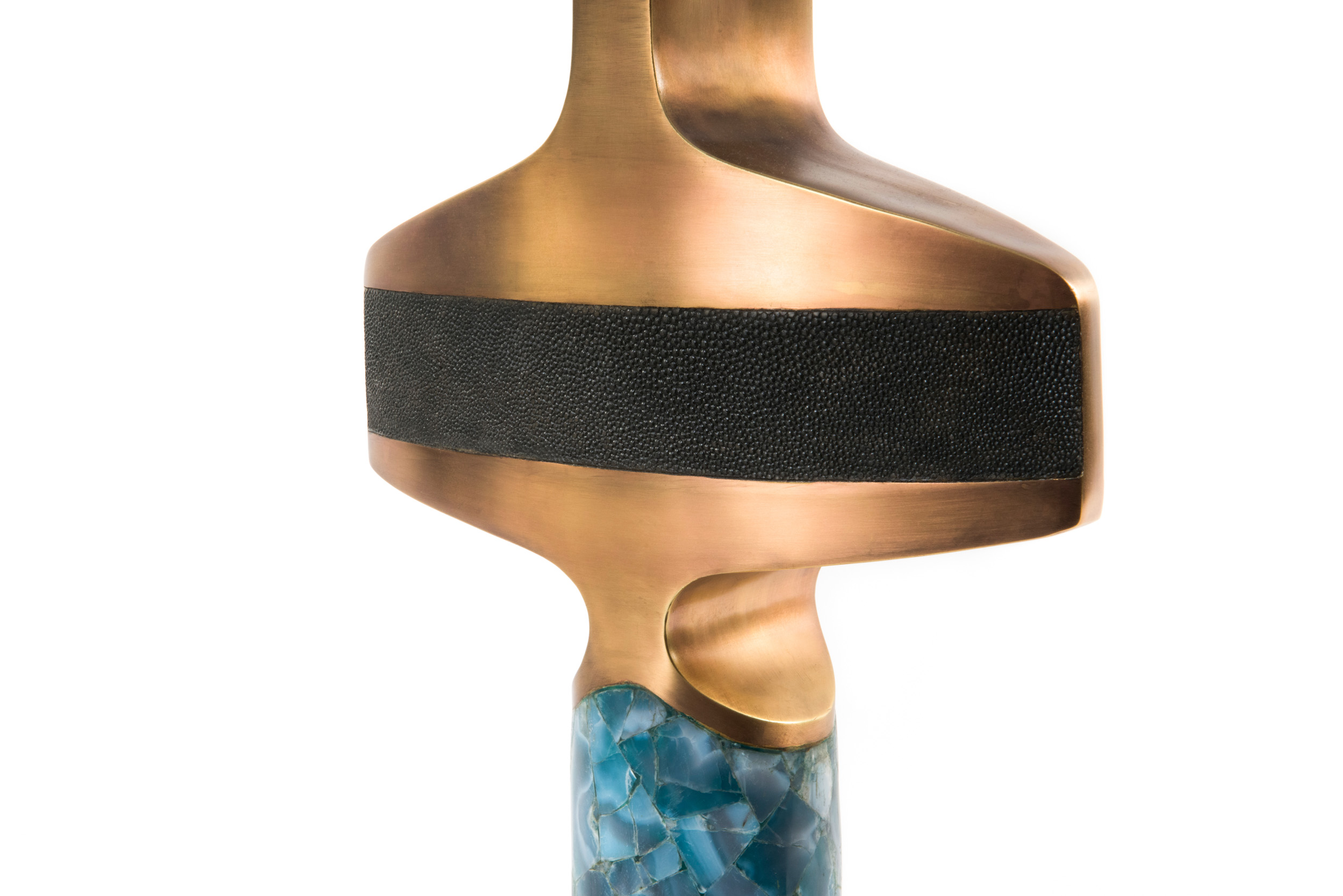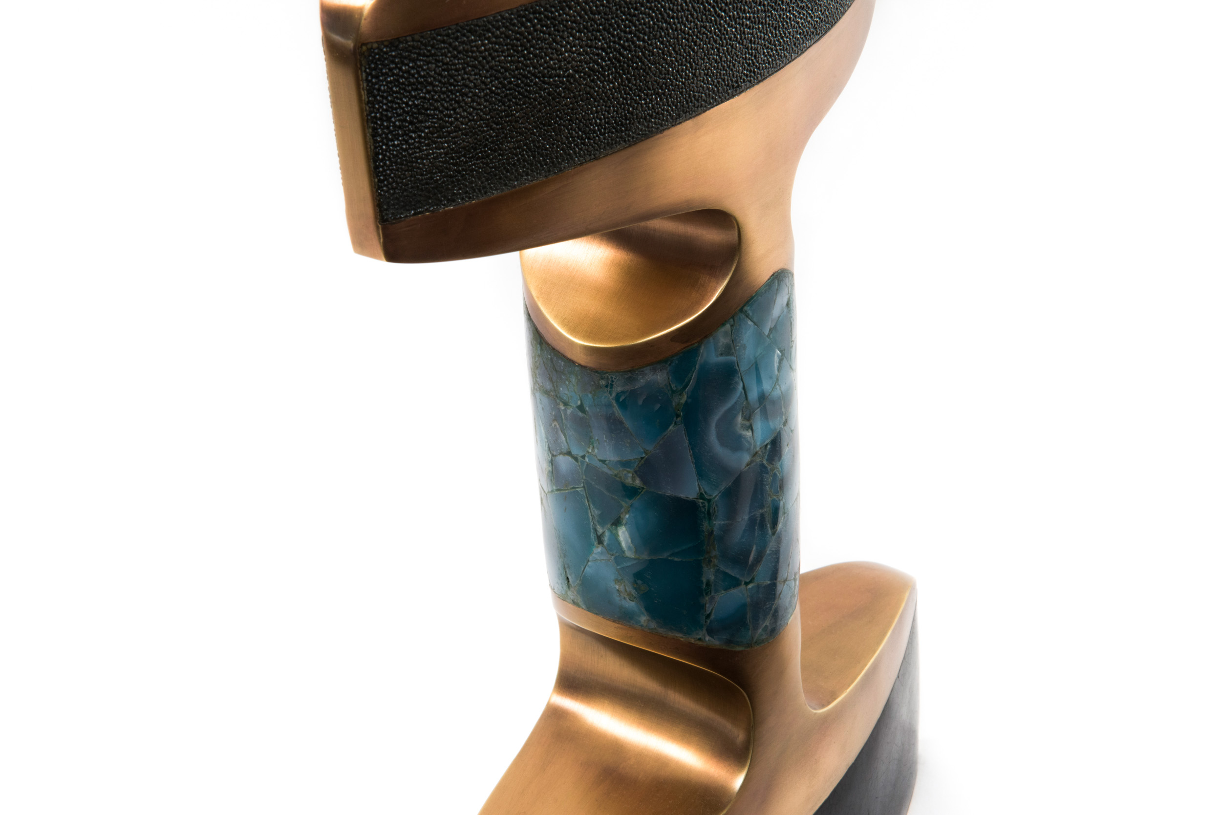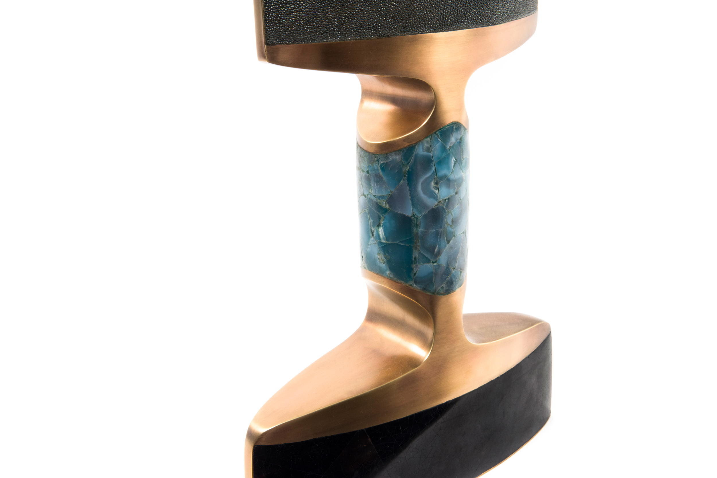 All R&Y Augousti pieces are handcrafted by skilled artisans. Each design uses unique materials, predominantly shagreen accented with bronze patina brass. Color variants may occur on the stingray and other exotic finishes, but this showcases the Parisian label's commitment to creating authentic luxurious products using natural components.