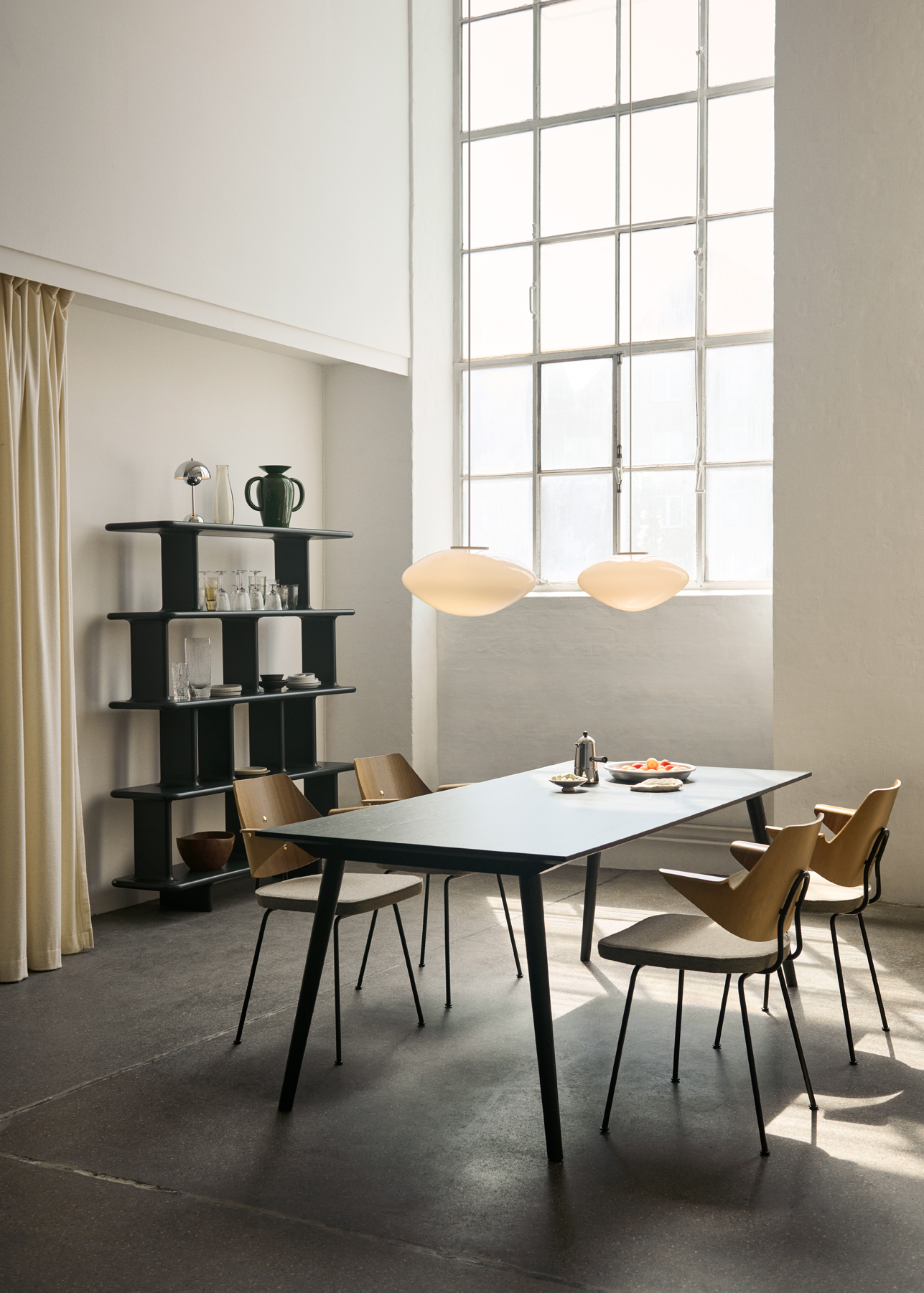 Originally created to seat visitors in the dining rooms of the Royal Festival Hall, the RFH Armchair by Robin Day is charactericed by the softly curved backrest and outwardly reaching arms. Rich in materiality, the chair’s striking form is achieved through a process of form-press moulding layers of beech and walnut veneer.