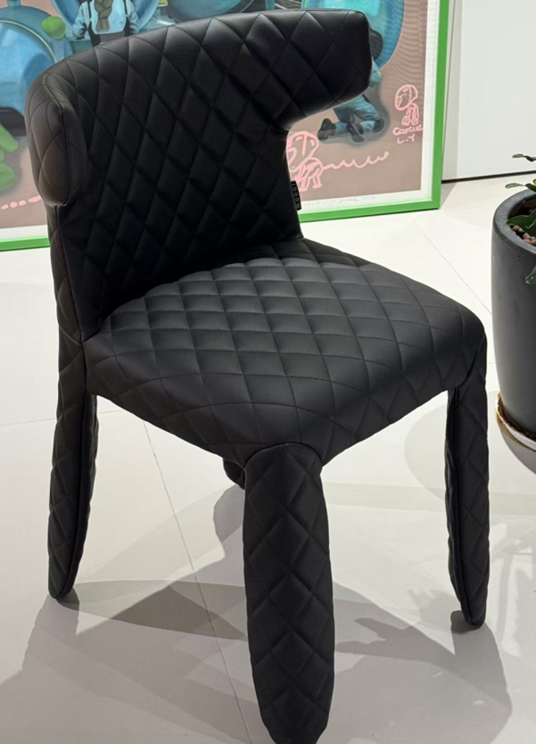 A soft, puffy and stylish chair as symbol of the eternal battle between opposite forces that take place in life and can be easily recognized inside ourselves, if we have the courage to open our eyes. Scary? Not at all! You forget all about the monster once you sit down and enjoy the chair’s comfort and softness. The signature version, the fearless leader of our Monster family, comes upholstered in Moooi Original Black Synthetic Leather with an embroidered face.