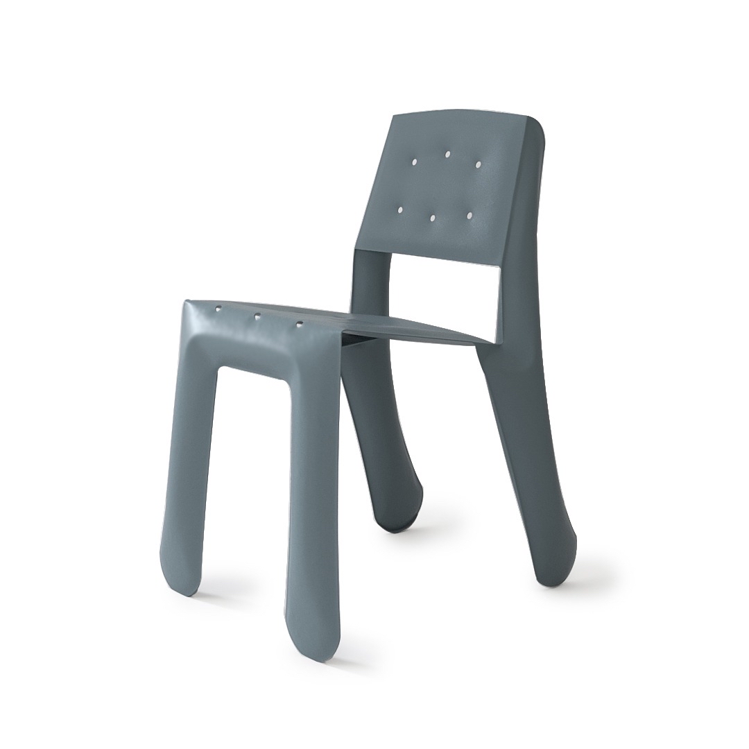 A development of the limited edition Chippensteel 0.5 chair – available in new colours. It still offers a unique material experience but the shape of the chair has been slightly redesigned to allow a mass-production. The chair has been uniquely processed and produced in FiDU technology using bending properties of steel sheets.