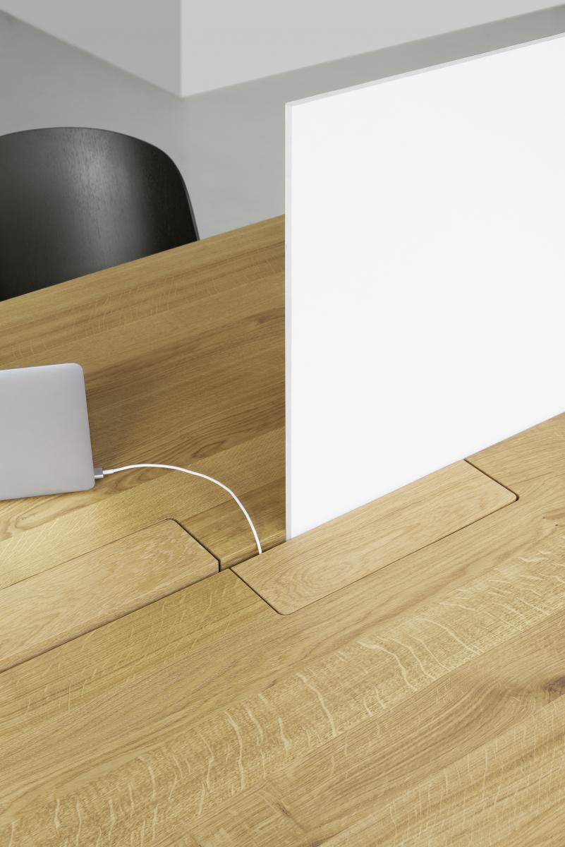 e15 continues its collaboration with David Chipperfield and the development of the original trestle table BASIS into a modular workstation.Focusing on the needs of creative and functional work environments, BASIS workstation is a smart and casual desk system stripped back to the essentials whilst featuring the pure use of material and craftsmanship.BASIS workstation is equipped with diverse possibilities for wire management and various types of partitions for privacy as well as acoustic or magnetic features that can be easily inserted into the table without use of additional hardware.