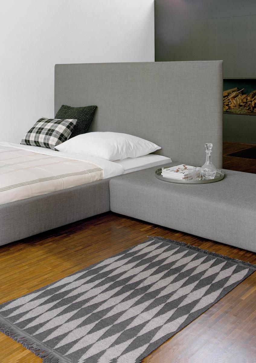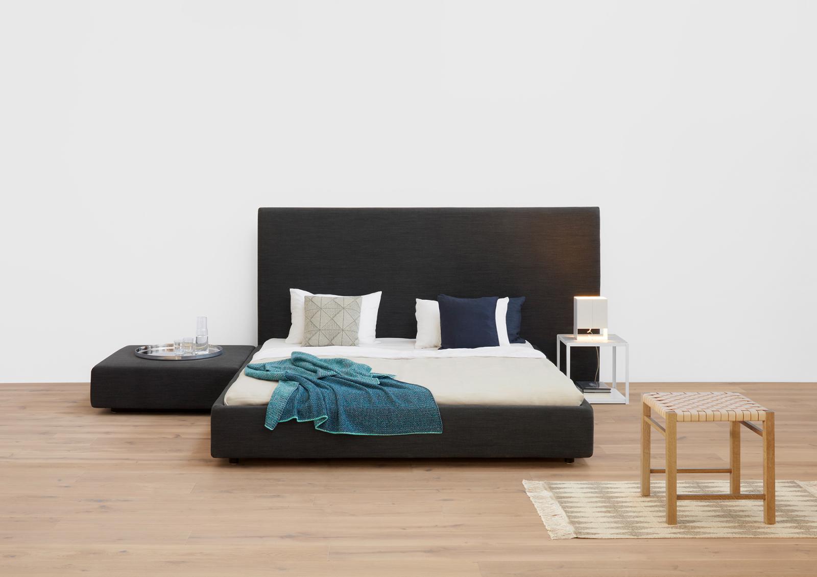The upholstered PARDIS bed is a natural extension of e15’s SHIRAZ sofa, and in an ideal way combines elegant design with functionality and individuality. Like "shiraz", the name "pardis" is also persian, an original word for "paradise". In line with the SHIRAZ sofa series, the PARDIS bed eloquently combines elegant design, choice and functionality. The PARDIS bed is available in two different heights for the headrest, and three separate widths. As an additional feature, the PARDIS headboard can also be ordered with an extra extension on either the right or the left-hand side or alternatively extending on both sides of the frame.