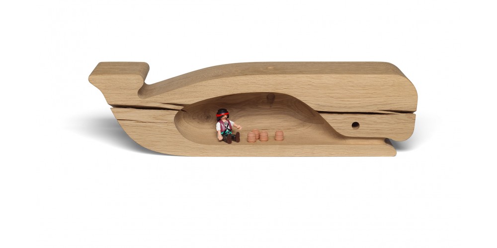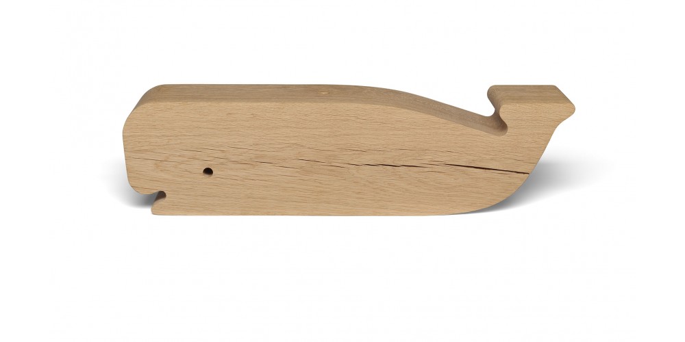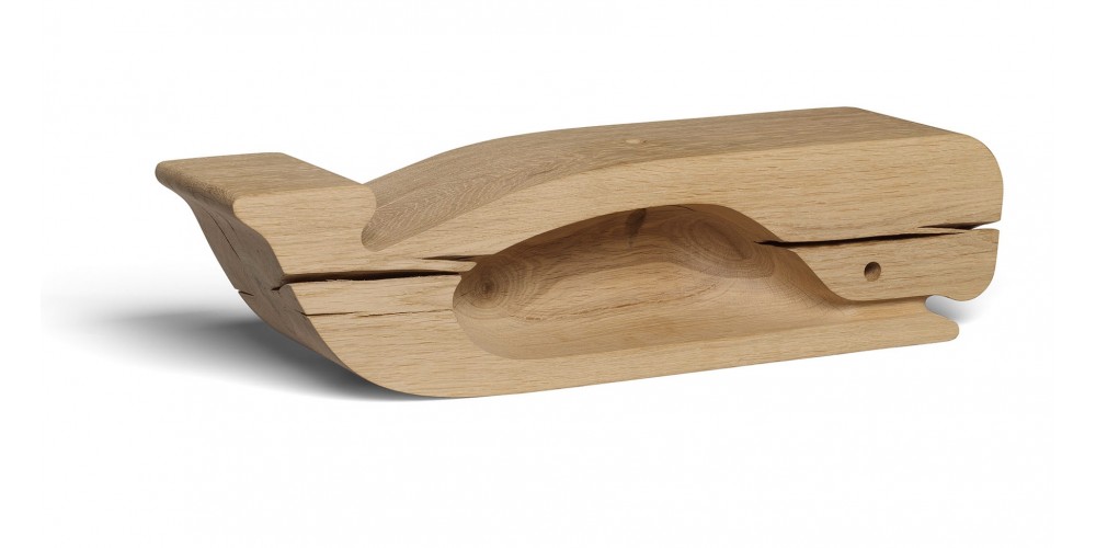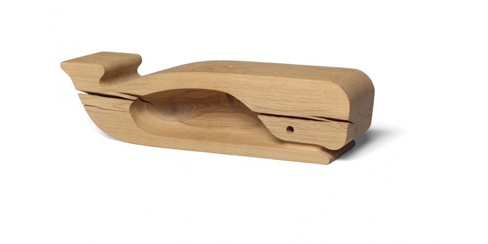 As part of the collaboration between e15 and éCAL / University of Art and Design Lausanne, Paul Louda developed solid wood object MOBY utilising the raw materials of e15’s iconic stool BACKENZAHN?. Crafted from untreated solid oak, the playful object is based on the shape of a pot whale.