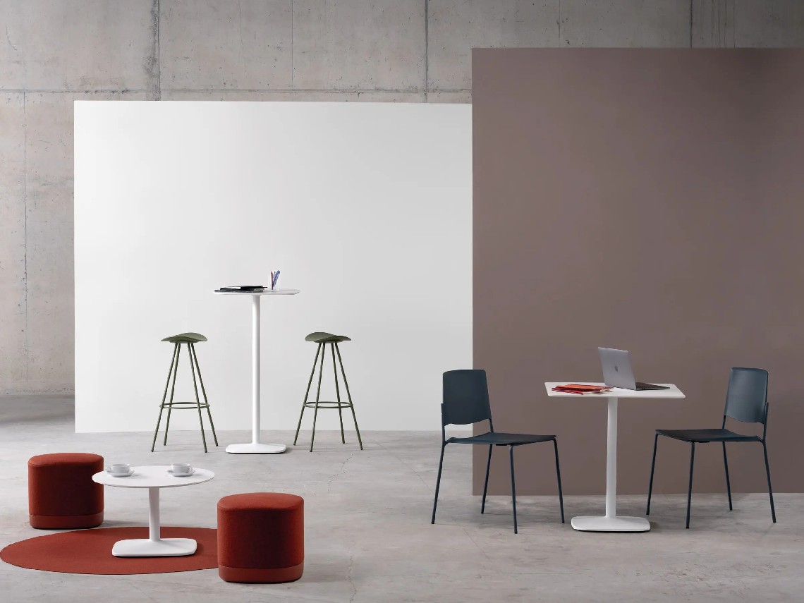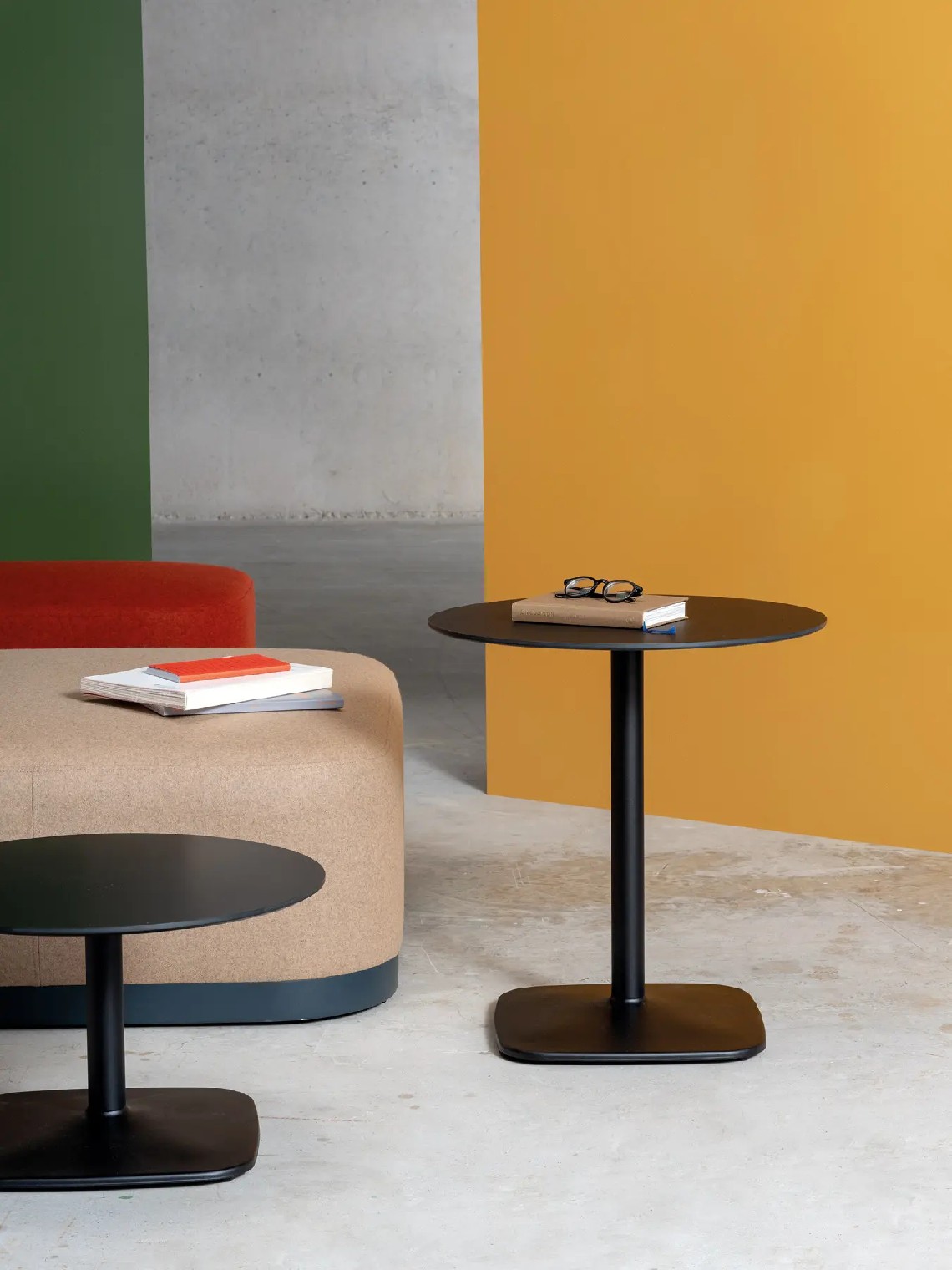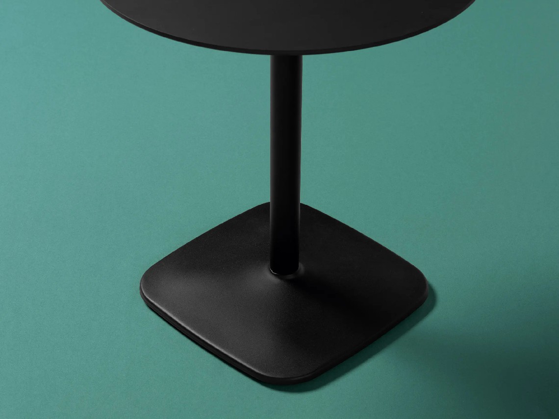 Iron table has a steel structure lacquered in any of our colours that provides absolute stability. Having variable heights, different finishes and table top shapes, it is perfect for cafes, bars, restaurants and hotels, though it is also adequate for more corporate environments.