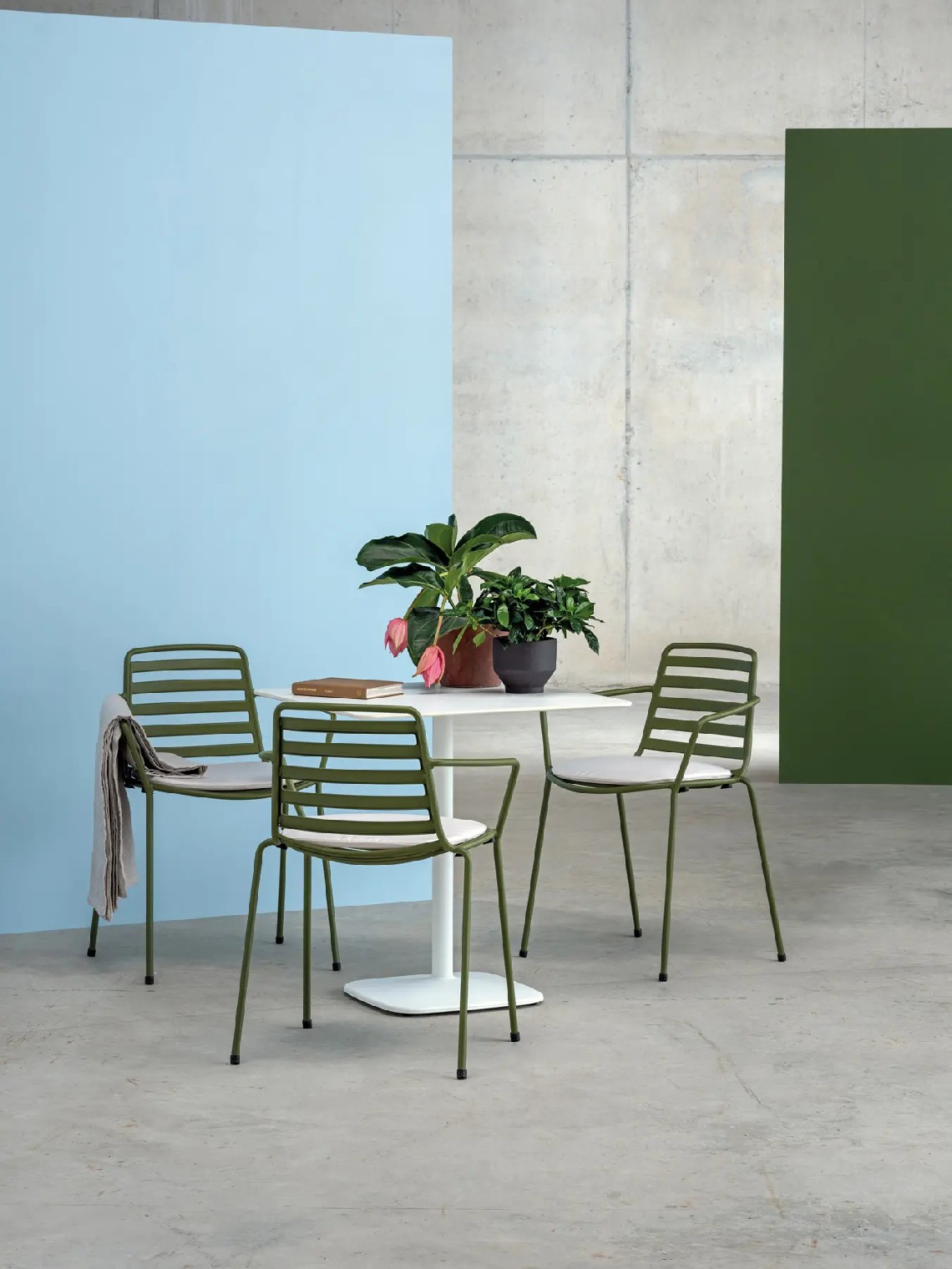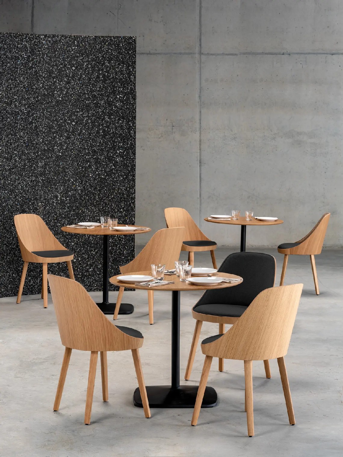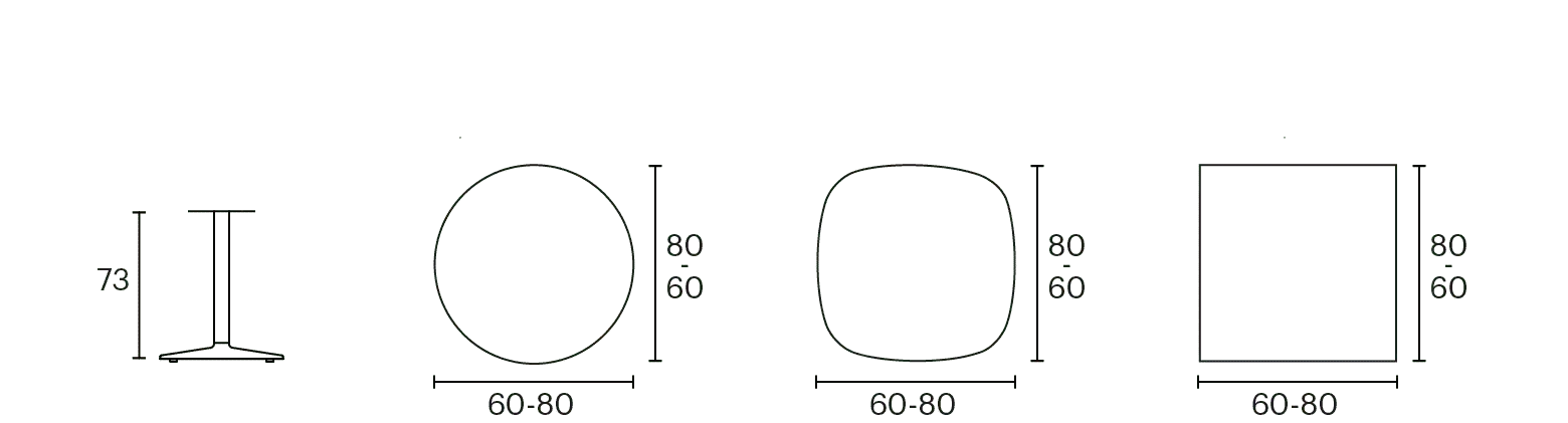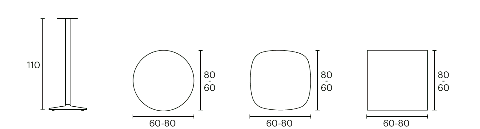 Iron table has a steel structure lacquered in any of our colours that provides absolute stability. Having variable heights, different finishes and table top shapes, it is perfect for cafes, bars, restaurants and hotels, though it is also adequate for more corporate environments.