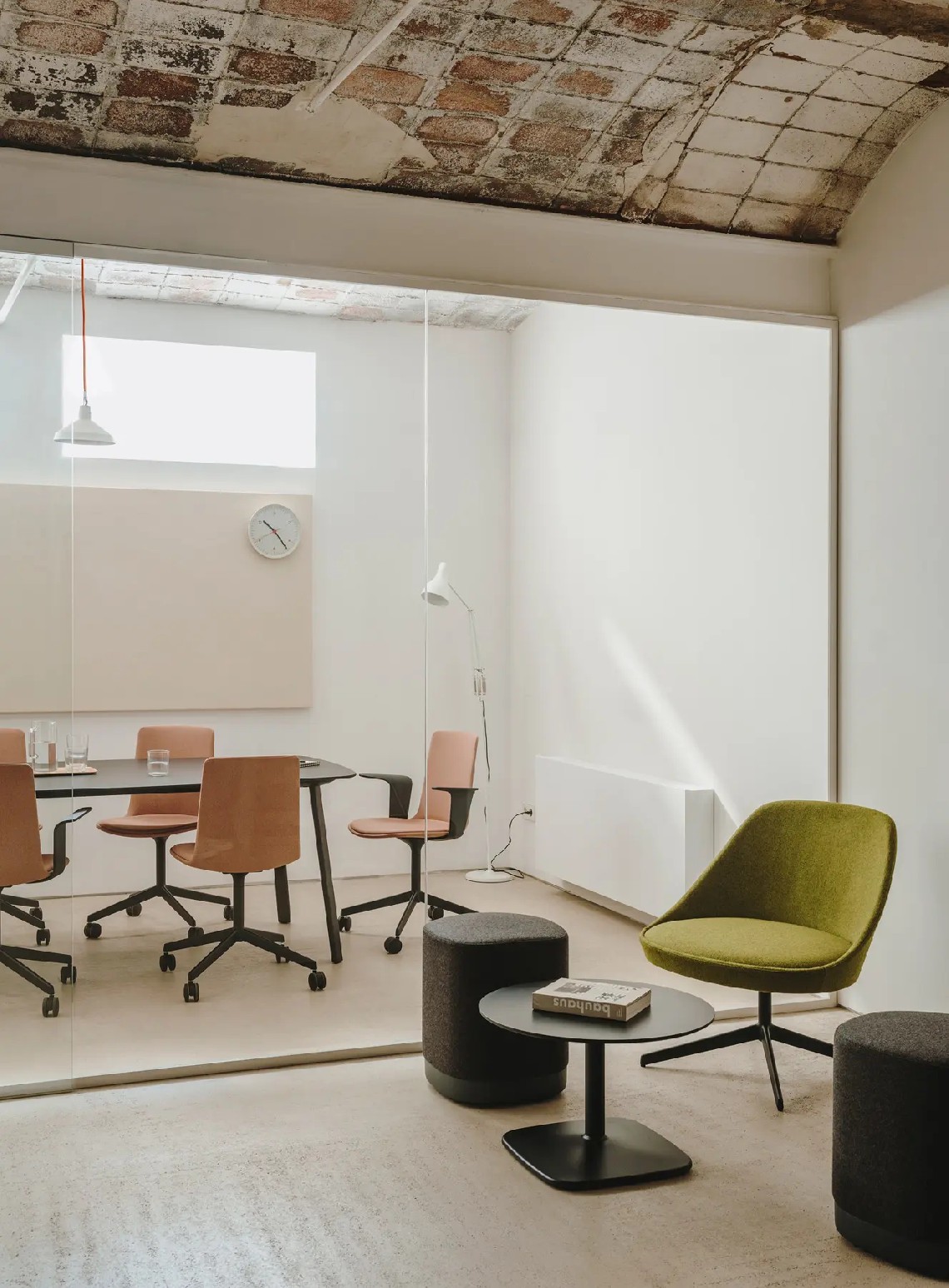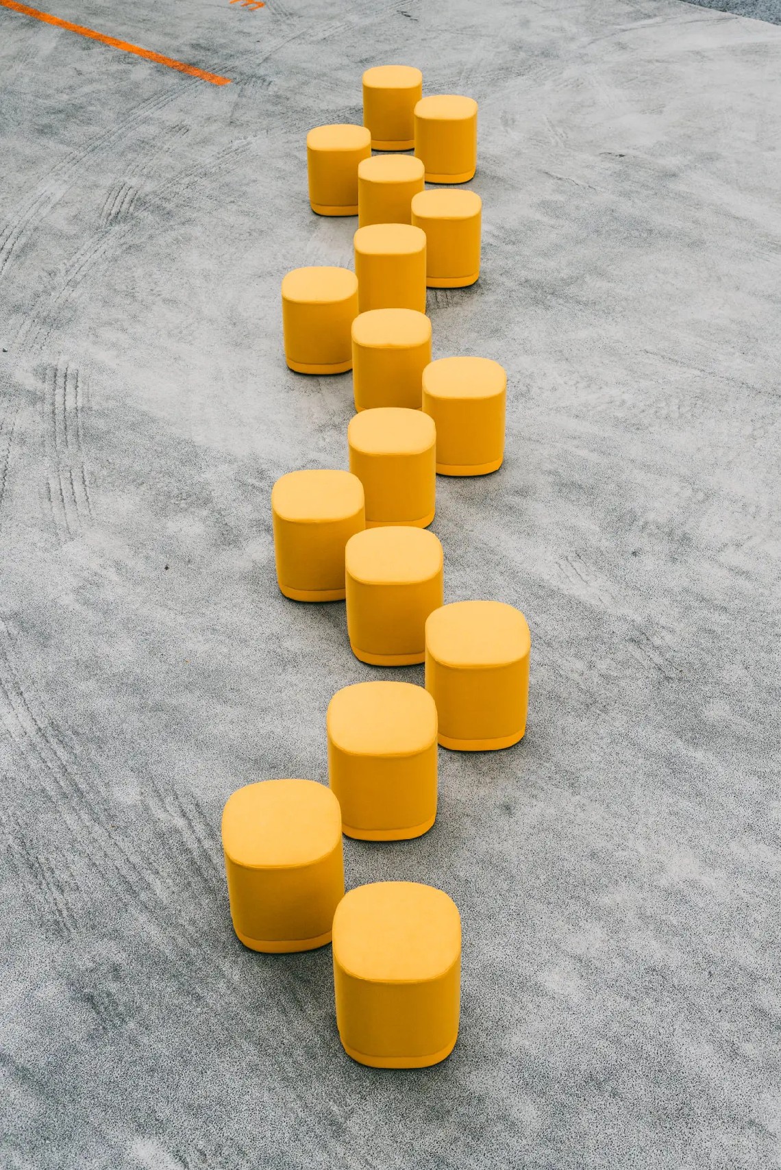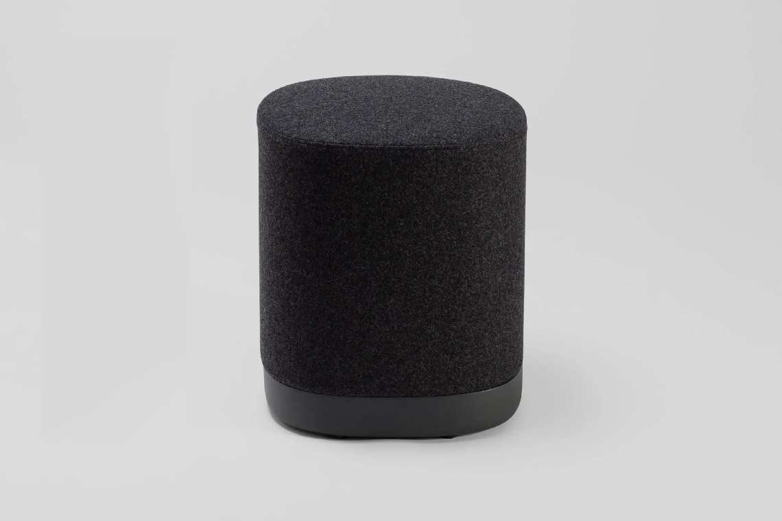 The Puck pouf has an aluminium base lacquered in any of our colours and with or without castors. The seat can be upholstered in one or two fabrics and that is the reason why it is possible to combine one, two or three tones in the same pouf.
