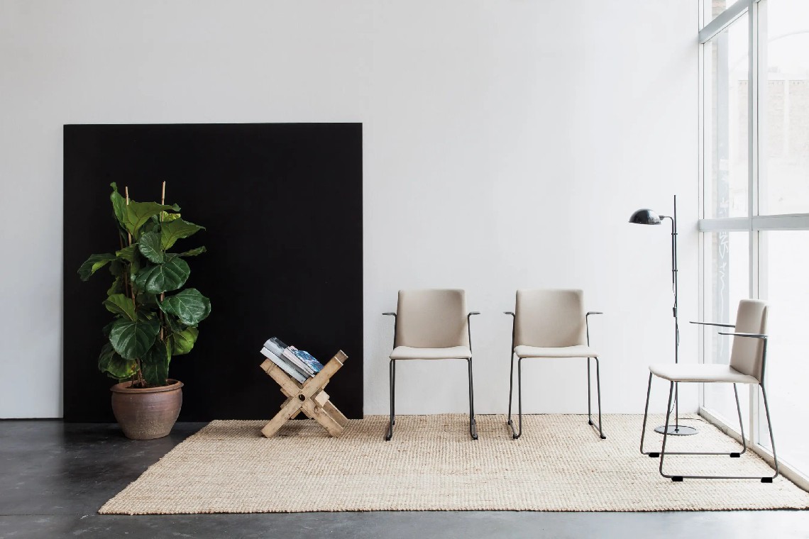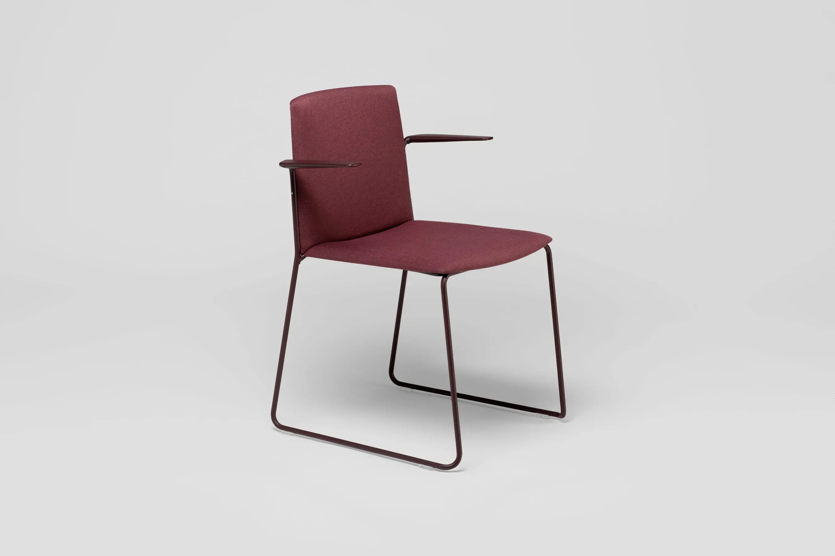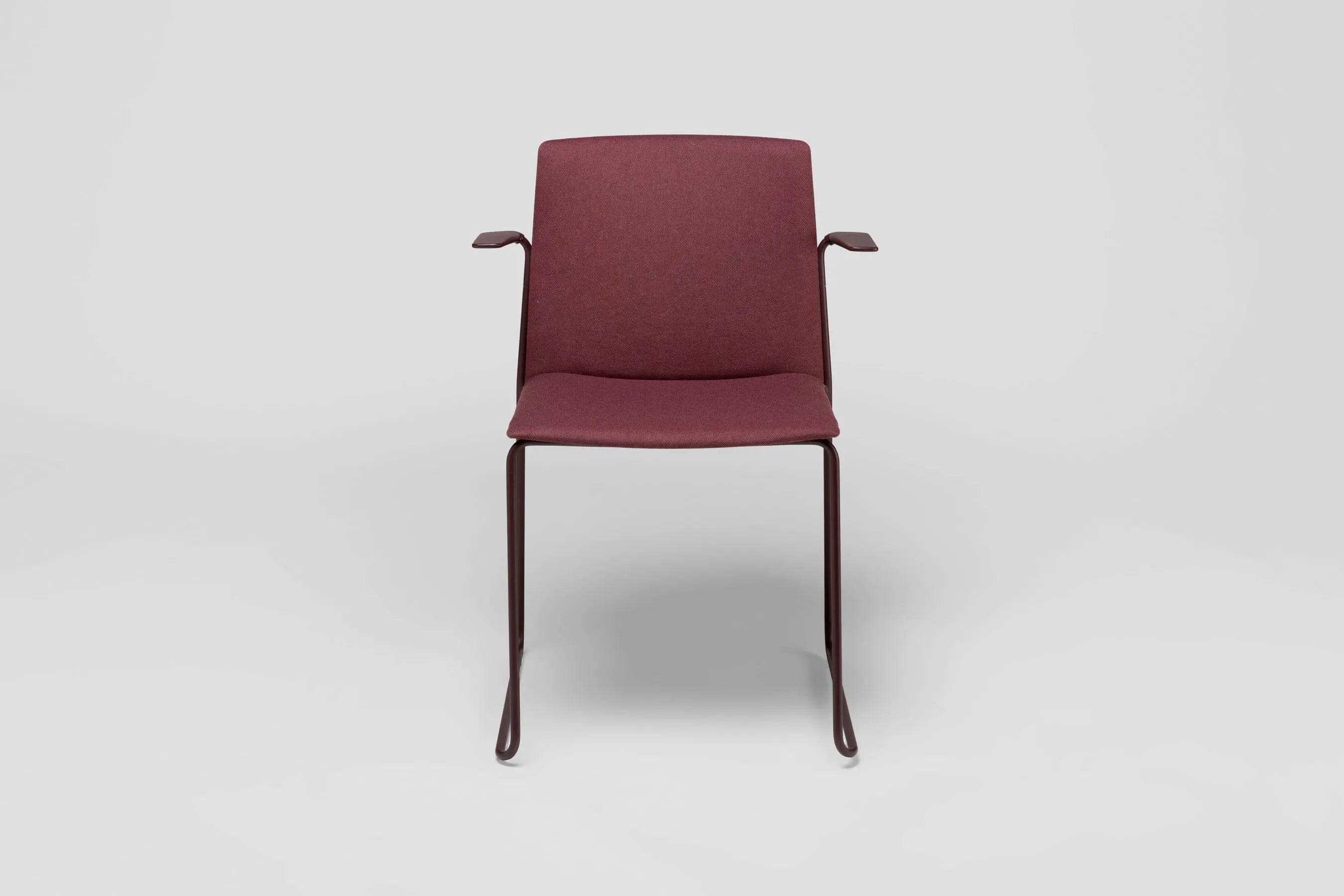 Ema chair with closed backrest and arms is strong, lightweight and high stackable and its closed back makes cozier than the open back. This model also allows to stack up to 45 units, what makes it perfect for all kinds of spaces, in special for contract sector. The sledge steel structure and the aluminium arms can be chromed/polished or lacquered in any of our colours and the seat and backrest are available in polypropylene or upholstered. Besides, it has an upholstered seat pad available, which is very useful for multipurpose or crowded spaces, improving stacking by causing less friction than the full upholstery version. In this case, the stackability reaches up to 20 units on the trolley and 15 units on the floor.