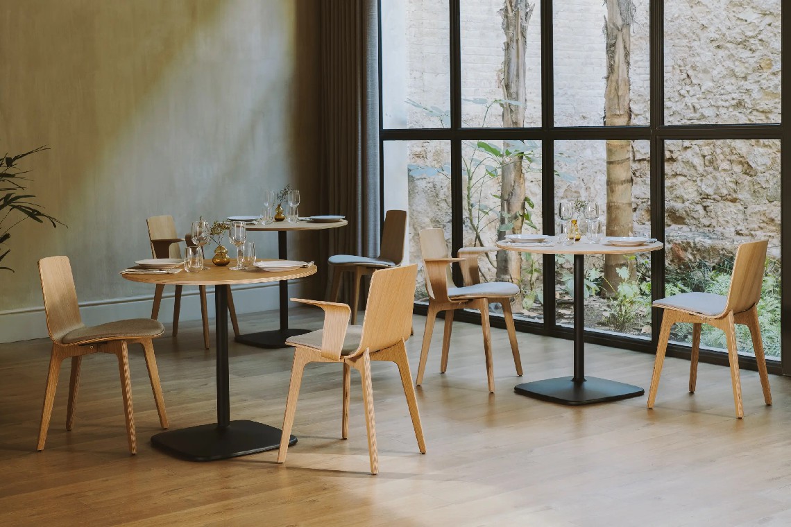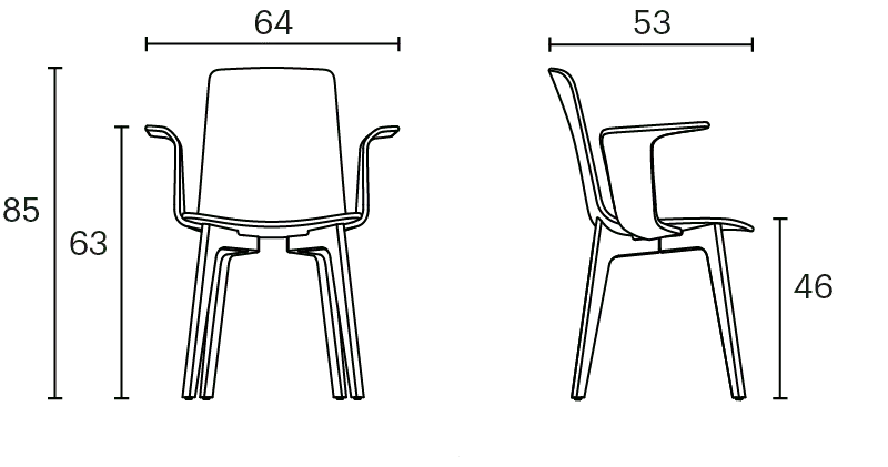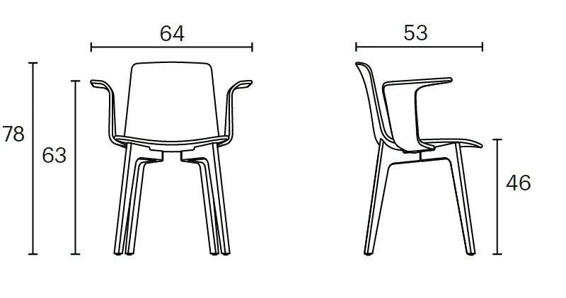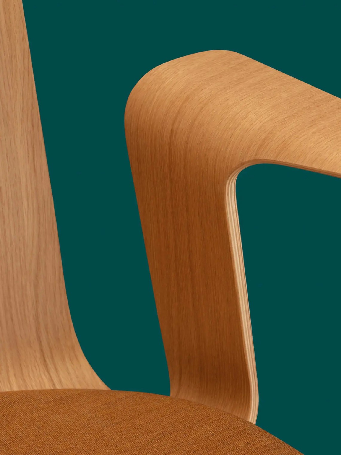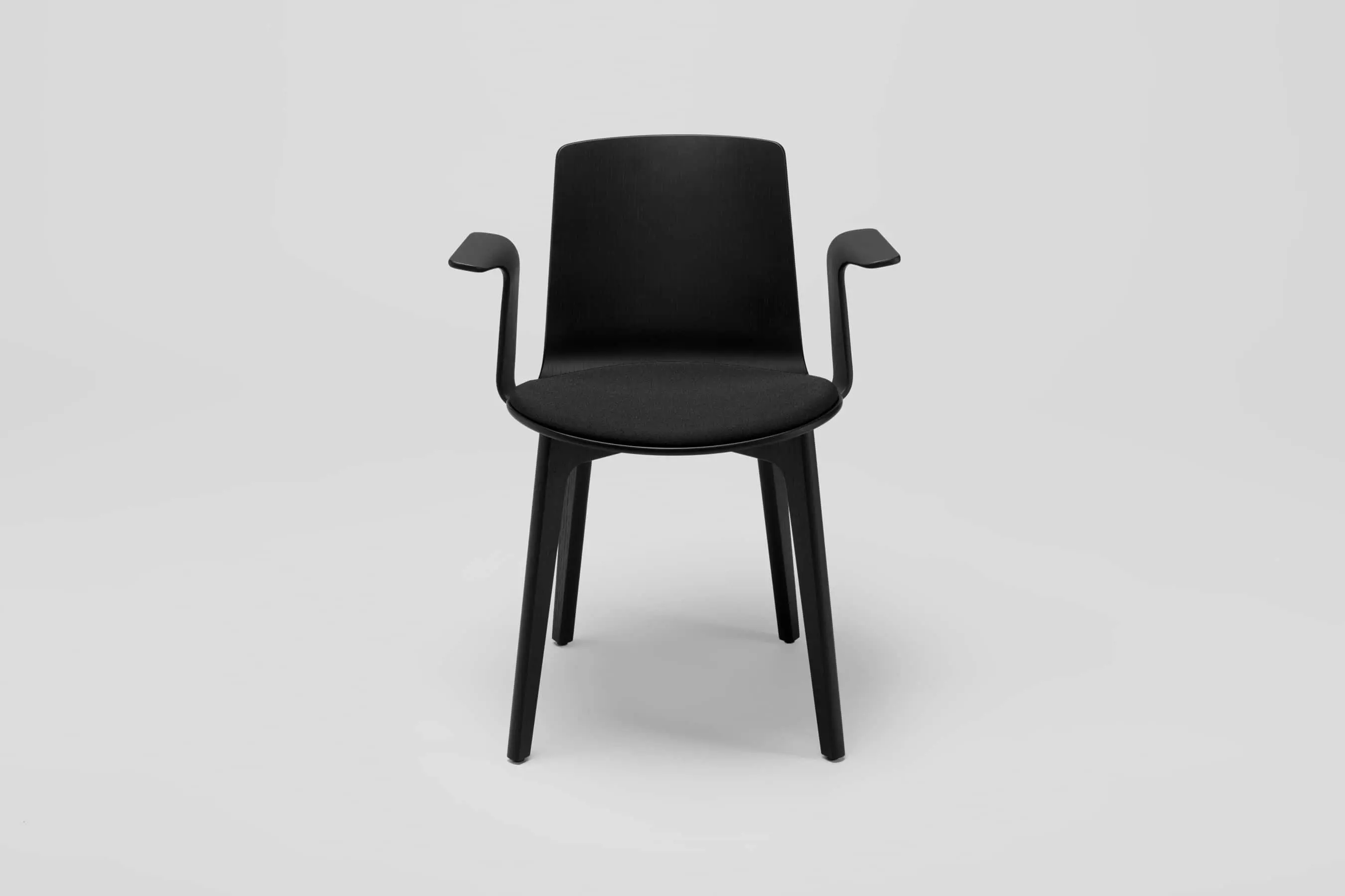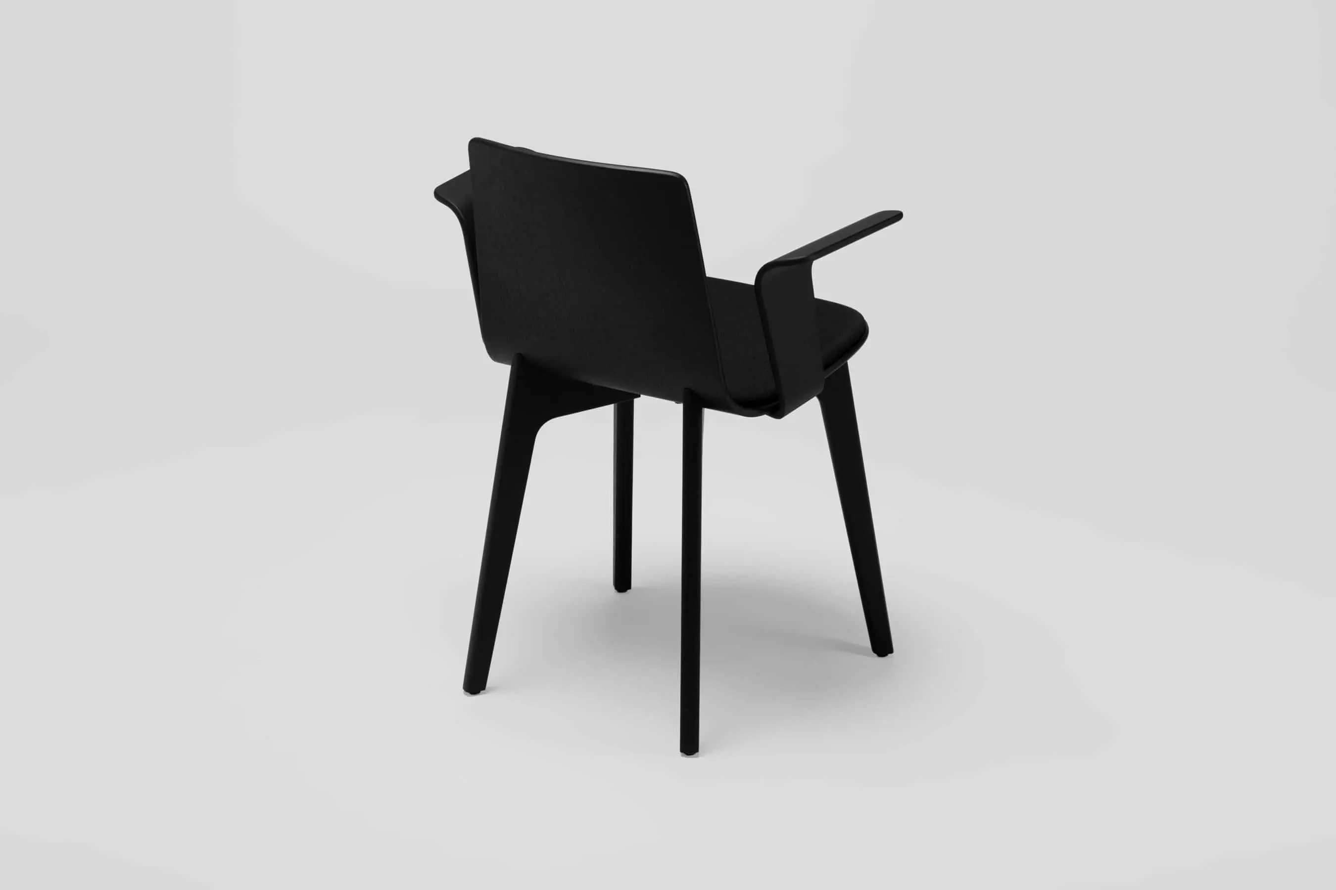 Lottus Wood armchair, with a 4-legged oak or birch wooden structure, has a broad range of finishes available: wooden shell with upholstered seat pad, polypropylene shell with or without polypropylene or upholstered seat pad, or fully upholstered one. Besides, it has two different heights of backrest, standard and High one, and oak wooden armrests.