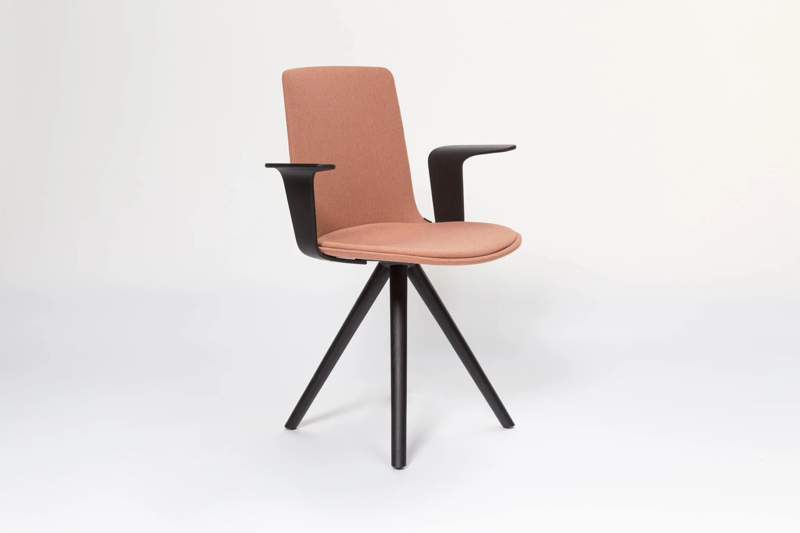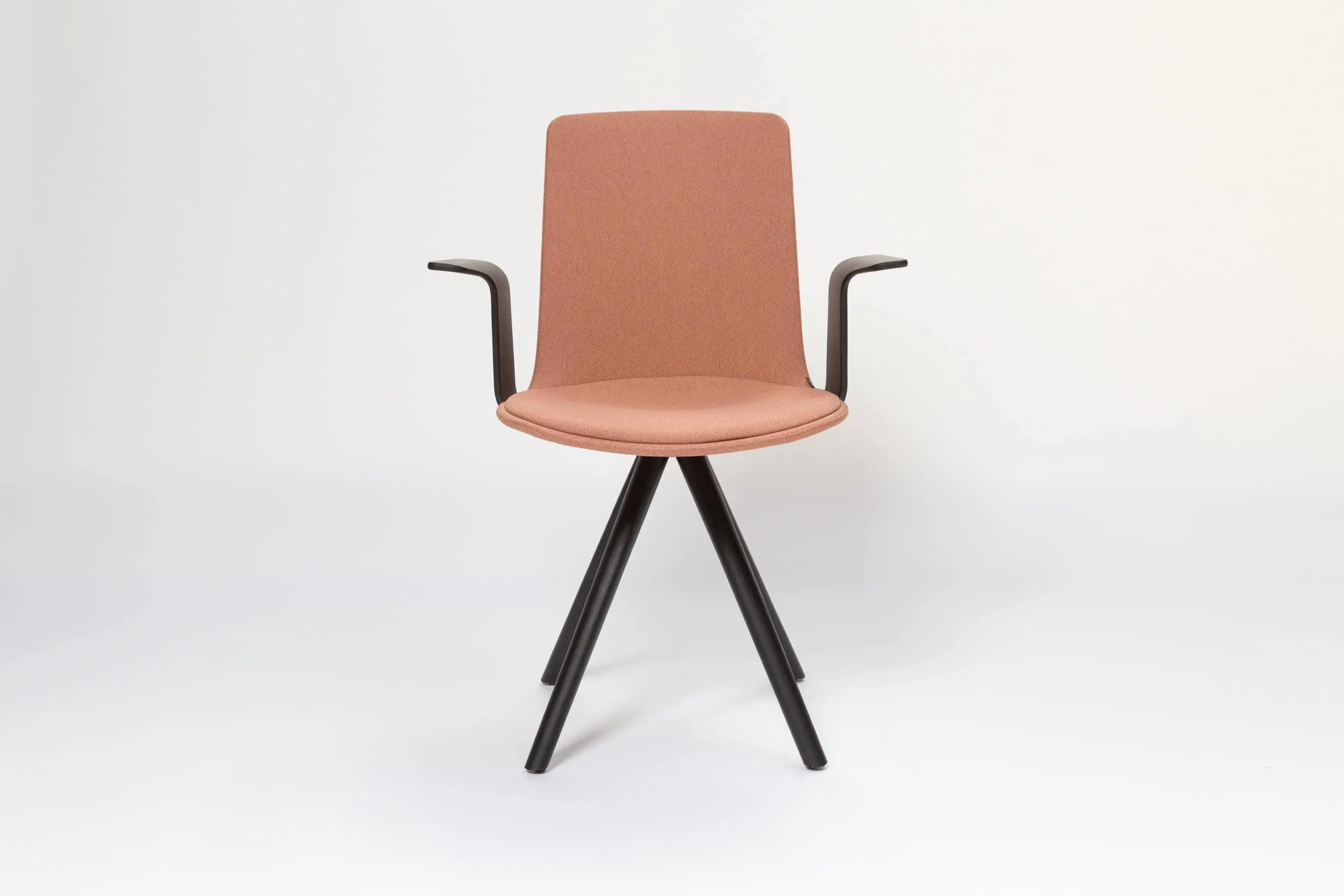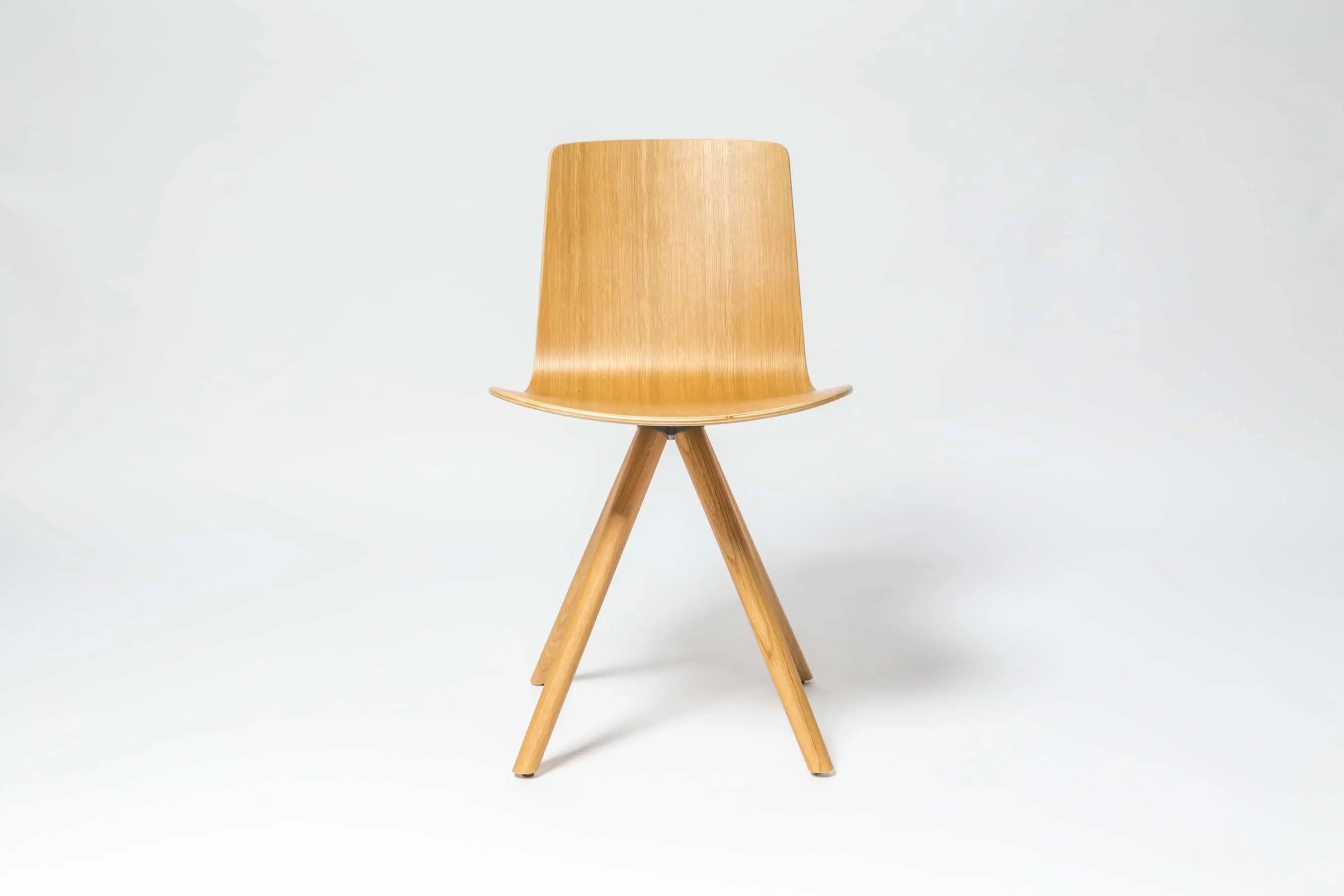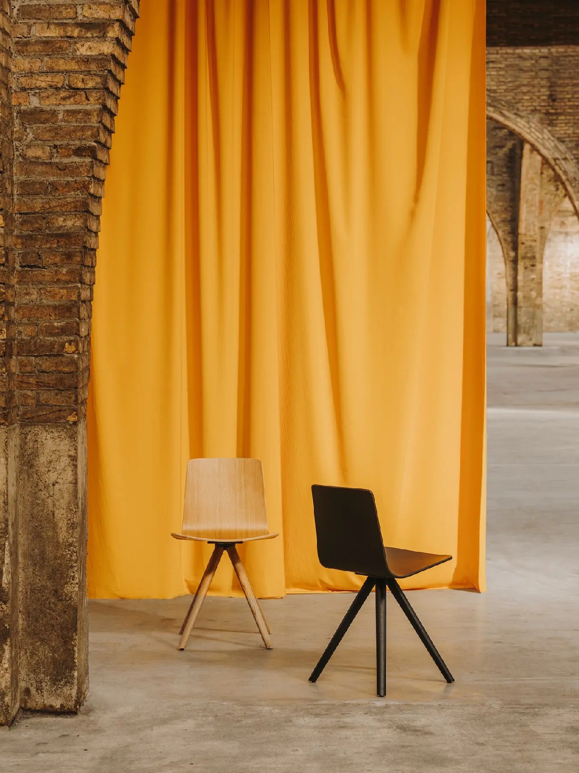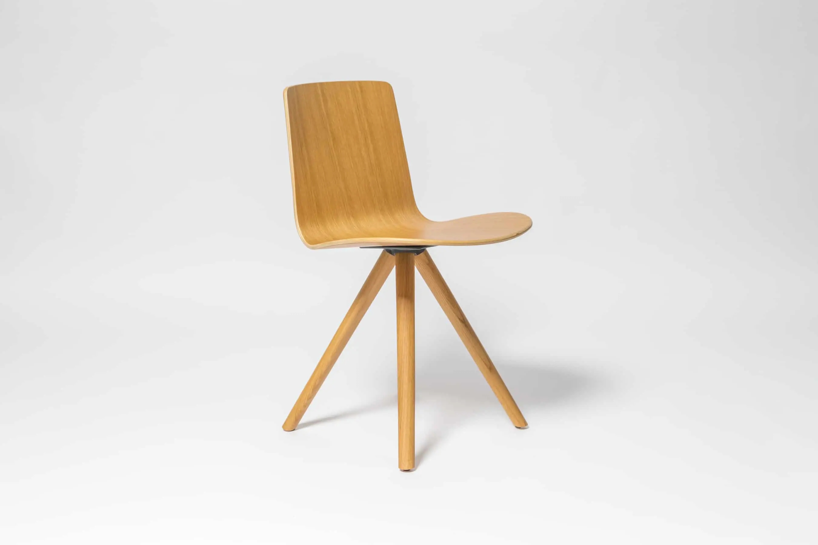 Lottus Wood spin chair, with 4-legged oak wooden structure, has a broad range of finishes: wooden shell, polypropylene shell with or without polypropylene or upholstered seat pad, or fully upholstered one. Besides, two different heights are available: standard and high one. It brings warmth, lightness and comfort to the family, making it the ideal choice for soft office and hospitality spaces.