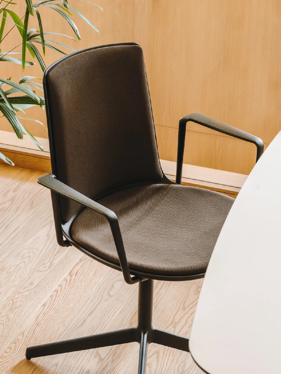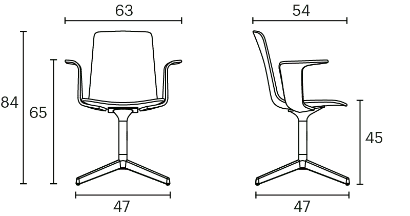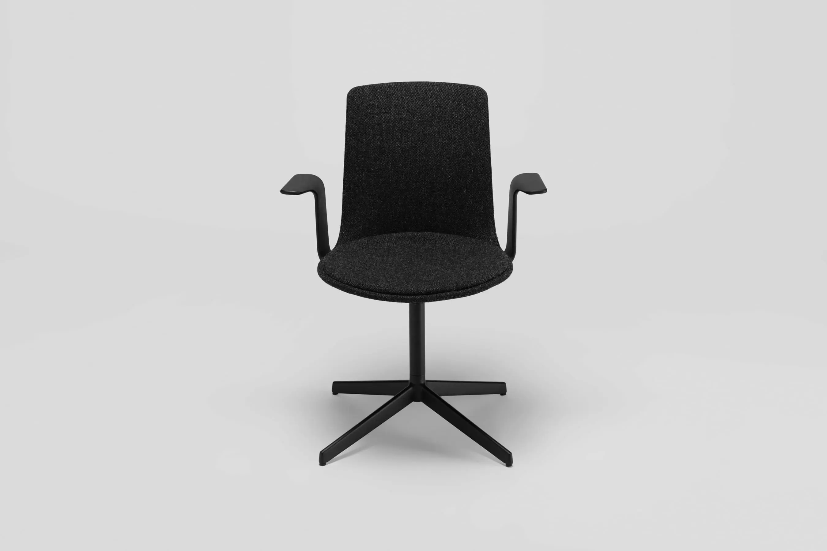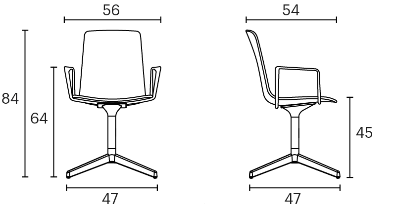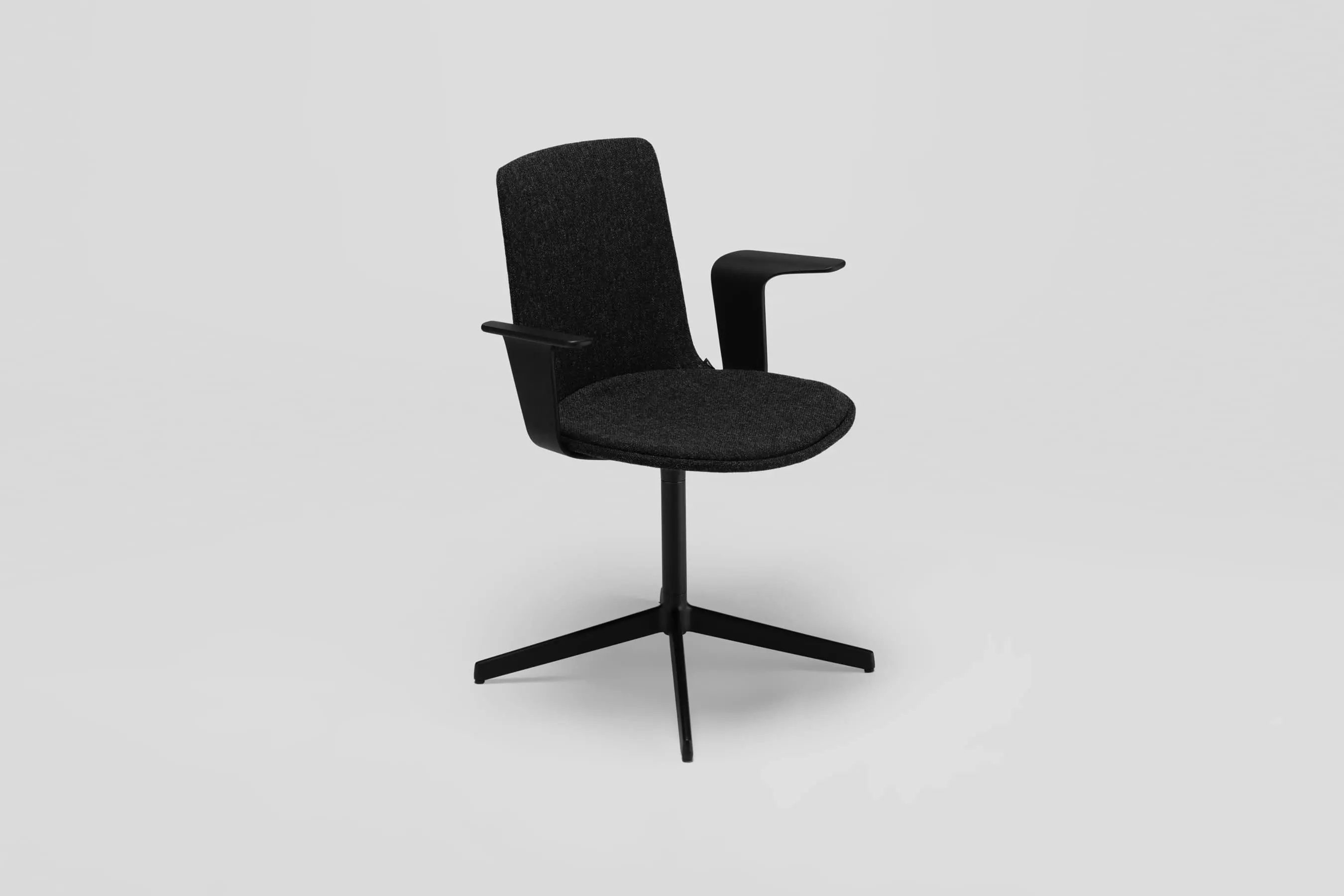 Lottus High confident chair has a 4-star swivel or fixed aluminium base that comes in polish or lacquer option in any of our colours and has a broad range of finishes available: polypropylene shell with or without polypropylene or upholstered seat pad, or fully upholstered one. Furthermore, it is possible to add aluminium or natural or stained oak wooden arms.