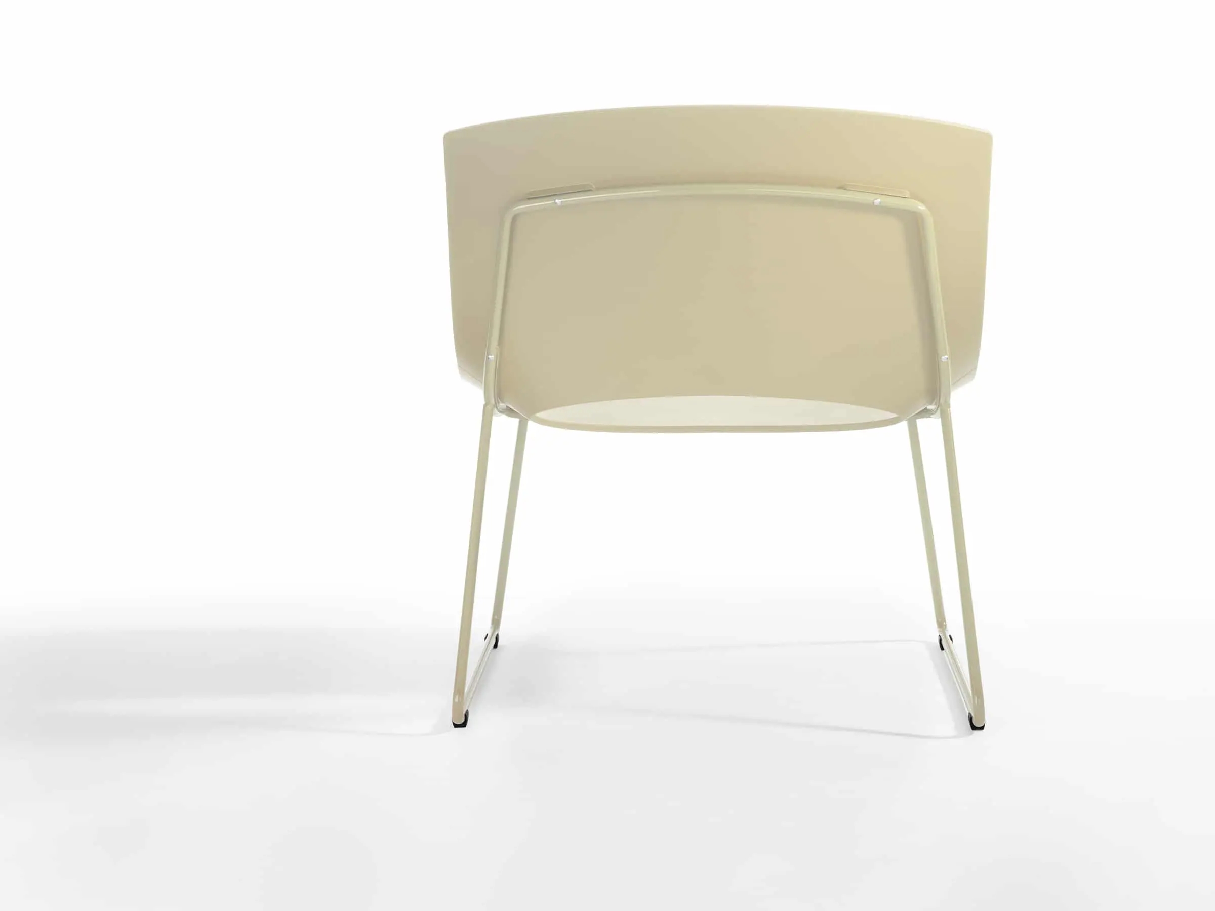 This Oh! lounge has a sledge steel structure and it comes in chrome or lacquer option in any of our colours. The base is combined with a polypropylene shell that can have interior upholstery in any of our many fabrics.