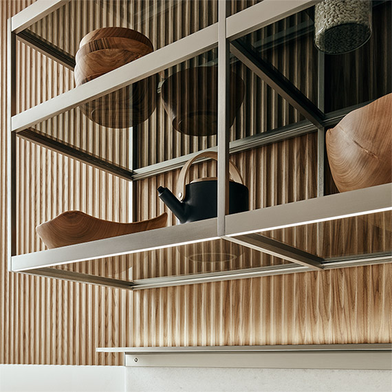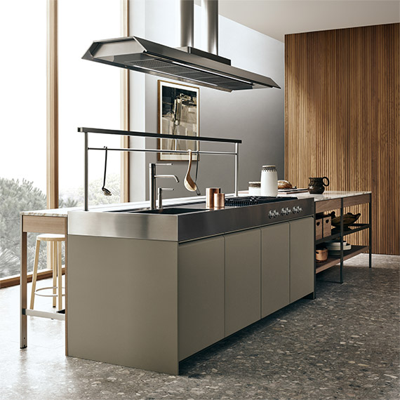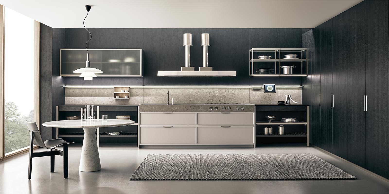 K-lab 可以通過(guò)各種全新材料和變體進(jìn)行定制:鉑金、石墨和縞瑪瑙 Metallix 飾面,光滑的北歐橡木,開(kāi)孔型黑橡木,經(jīng)過(guò)熱處理的光滑橡木貼面,專用于框架門的優(yōu)雅銀色背漆鉆石圖案玻璃,采用異形手柄的全新 Nexus 門以及獨(dú)特的 Ernestomeda Zero Gloss? 漆面。