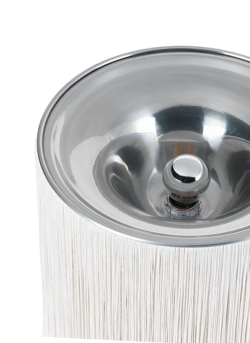 First released in 1961, the Model 597 by Italian virtuoso Gianfranco Frattini is the lamp that launched him as a lighting designer. Its unique and playful form perfectly encapsulates Frattini’s extraordinary approach to the aesthetics of light. Model 597’s unique nylon fringes were inspired by both the world of fashion and the fringed entrance curtains commonly found in Italy’s bars and grocery stores in the late 1950s. Thanks to the array of lateral bulbs, the Table Lamps emit a 360o play of indirect light, softened by the fringes to create a rich ambient glow, while the reflective aluminum cover adds warmth to the uplight.Model 597 is light-hearted in expression, but serious about functionality – bringing sophistication, fun and character to interiors without resorting to superfluous decorative flourishes.