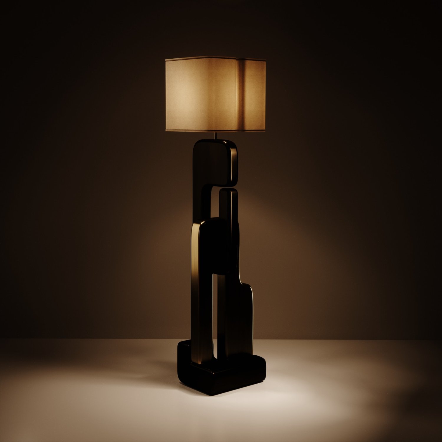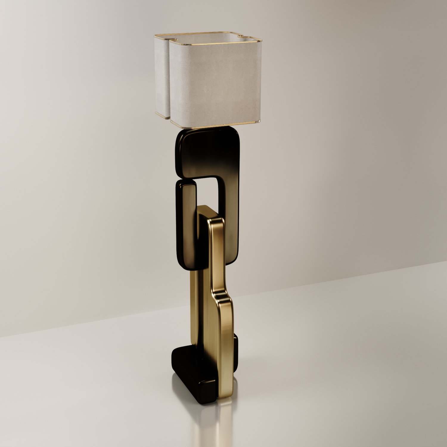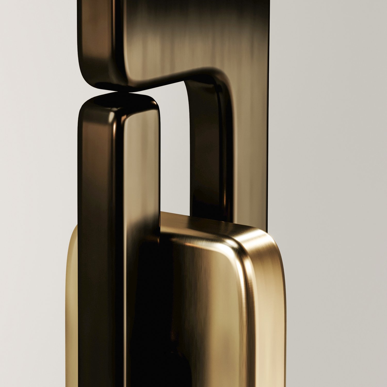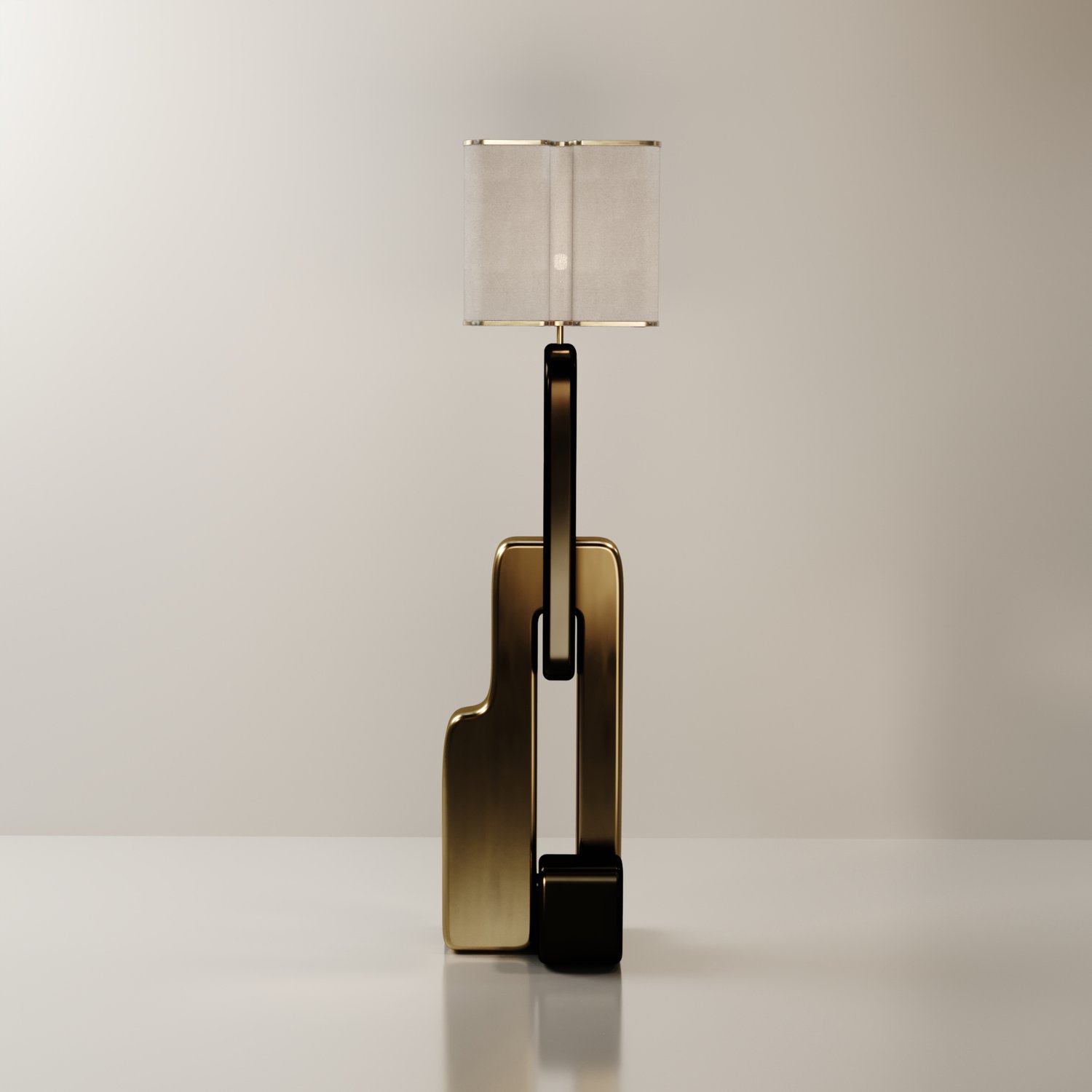The Apoli floor lamp by Kifu Paris is both dramatic and organic it’s unique design. The ethereal geometric and sculptural base is made entirely from bronze-patina brass. This piece is designed by Kifu Augousti the daughter of Ria and Yiouri Augousti. Part of the Apoli Capsule Series.