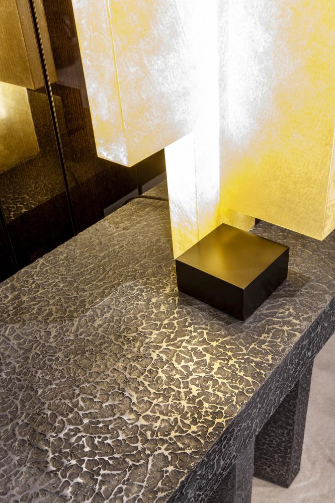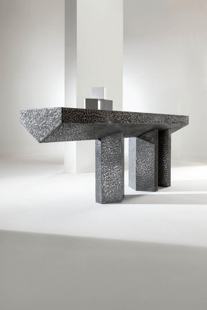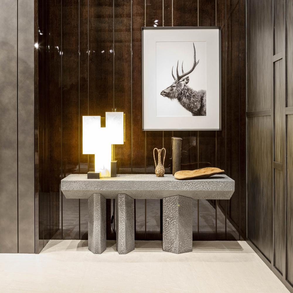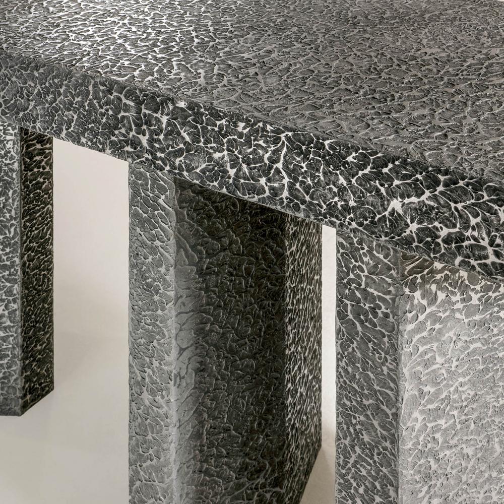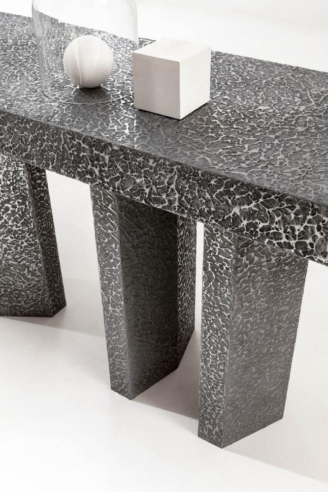 Part of the Imperfetto collection, this console re-proposes the imposing prismatic base of tables and coffee tables, referring, in its simplicity, to nature, minerals and rock formations.
