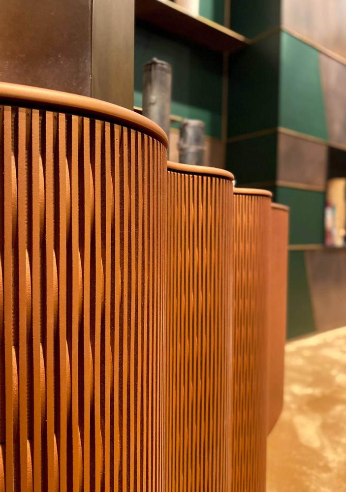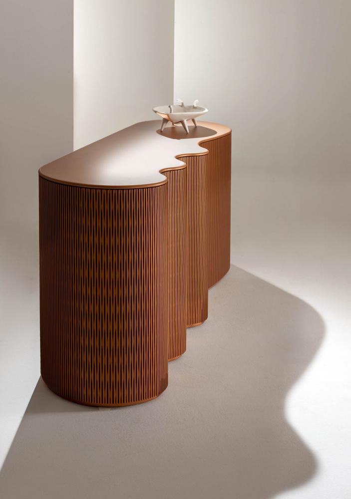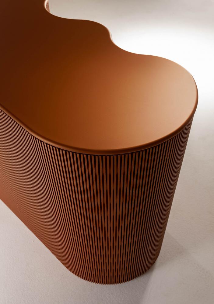 Part of the Infinity collection, this console revisits the unique detail of the geometric alveolar base, enhancing it thanks to a series of soft curves.