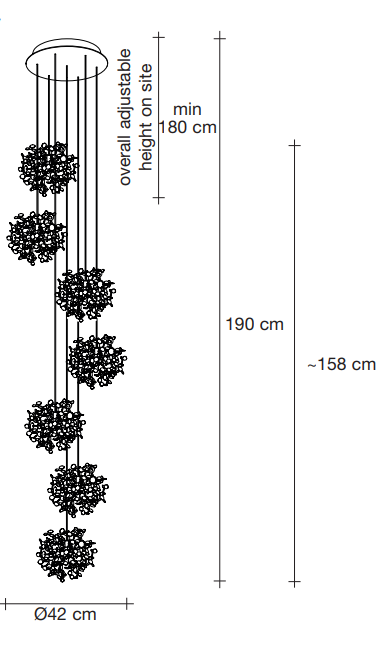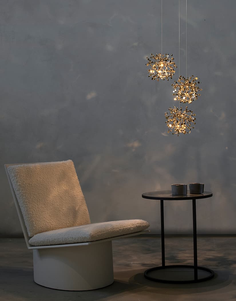 Terzani design team can work with you to develop a bespoke Argent, mon bijou design that fits your project including these options: wire length, finish, cluster design.
