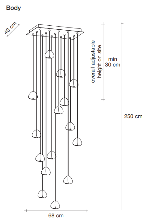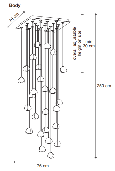 Terzani design team can work with you to develop a bespoke Mizu design that fits your project including these options: wire length, finish and cluster design.