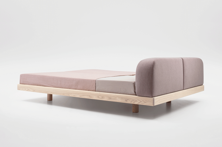 The pleasant feel creates a tangible softness. The comfortable upholstered cushions function as a headrest for reading while lying down or as a dimensionally stable backrest when sitting upright. The rounded cushions and their clearly differentiated seam pattern form a closed overall picture with the reduced bed frame.