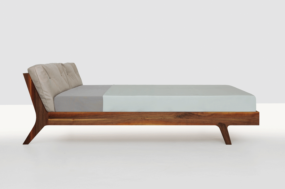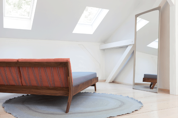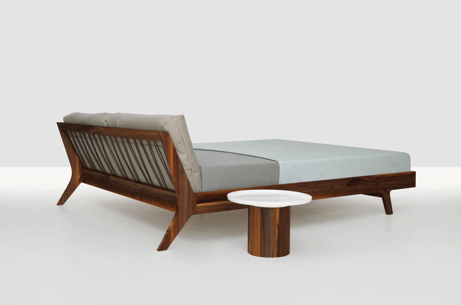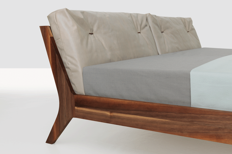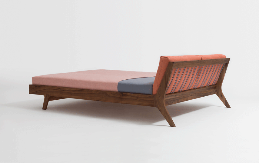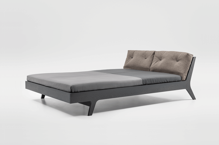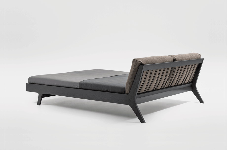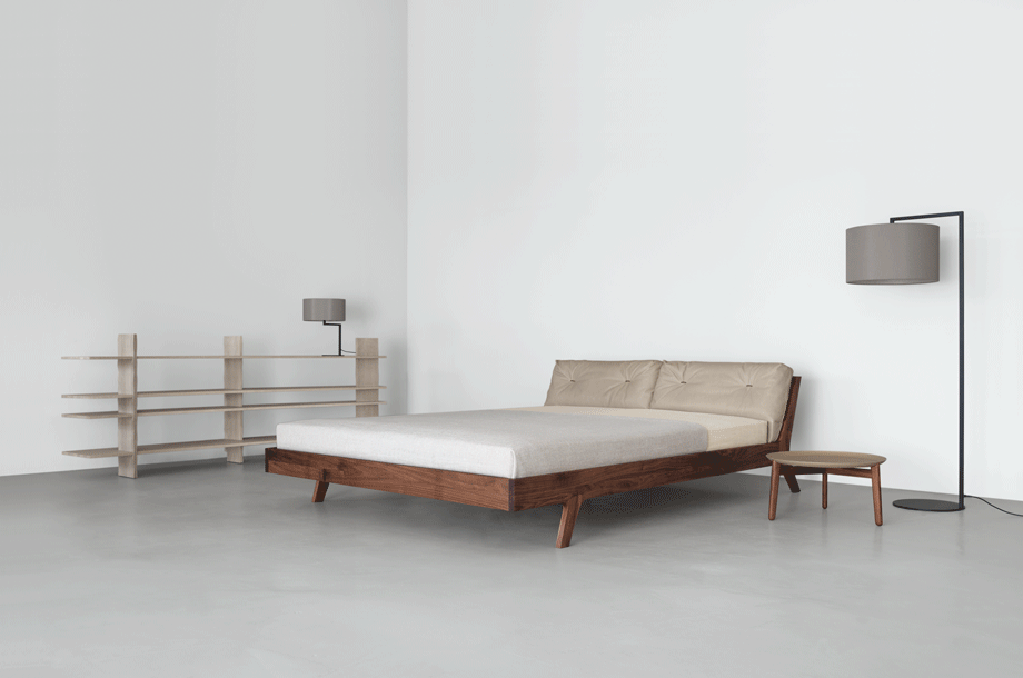 GRAND MELLOW – the larger variant of the MELLOW bed. Slimline material profiles, fine lines, a delicate frame and soft upholstery materials are the hallmarks of this bed. A touch of sophistication that doesn‘t steal the limelight but which adds definition to the bed‘s character is the lacing of bend leather straps in the back element, providing essential support for the soft back pillows. The dimensions of all cross sections of GRAND MELLOW are somewhat larger than MELLOW. The legs and the backrest are stronger. The bed frame is higher and has space for its own slatted frame. This makes GRAND MELLOW suitable for all common mattress systems and bed widths.
