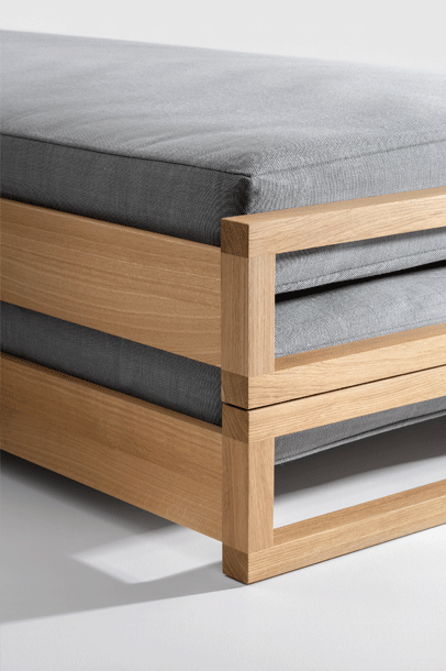 GUEST is a solid, simple stacking bed. For guests, for the teenager room and the holiday home. Two beds stacked, without fixings, make a wonderful couch for the daytime which can be made cosy with large cushions. Suitable as a permanent and double bed.