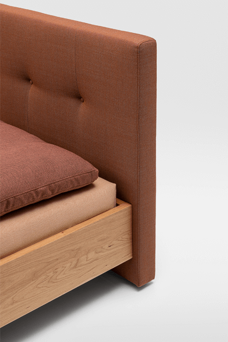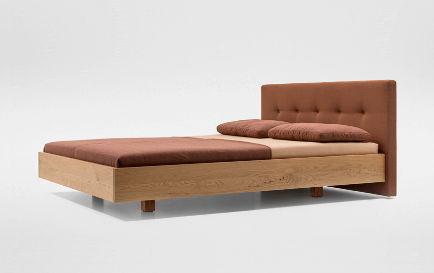The bed SIMPLE BUTTON comes as another version of the bed SIMPLE COMFORT. A significant detail is the upholstery with buttons in fabric or leather. The buttoned upholstered headboard is also possible to add subsequently to the SIMPLE bed. The upholstered headboard is available in two heights.