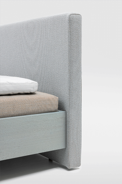 The bed SIMPLE COMFORT comes as another version of the bed SIMPLE. Its comfortable bedhead neatly rounds out the otherwise straightforward bed that requires a minimum of space. It is also possible to add the bedhead subsequently to the SIMPLE bed. The upholstered headboard is available in two heights.