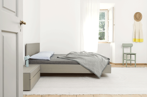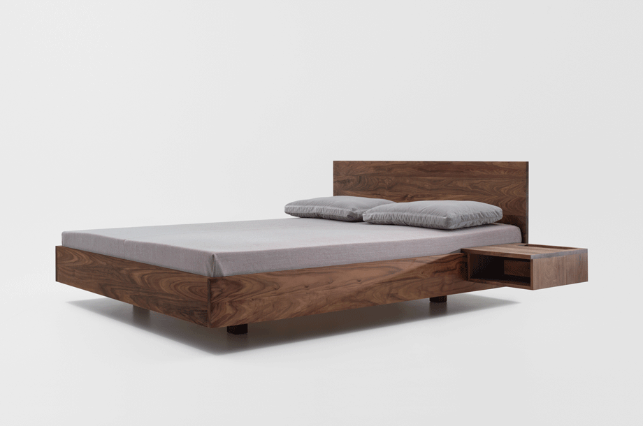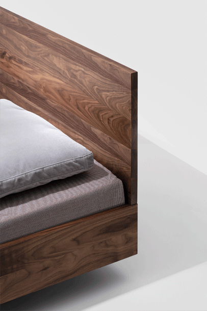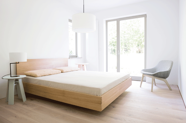 The bed SIMPLE HI is available in two hights of headboard: in the heights 67 cm and 79 cm. The puristic design of SIMPLE foregrounds the living material. The lightness of the construction is intensified by the floating frame. SIMPLE – the bed in the simplest form and function. SIMPLE HI – with a tall solid wood bedhead.