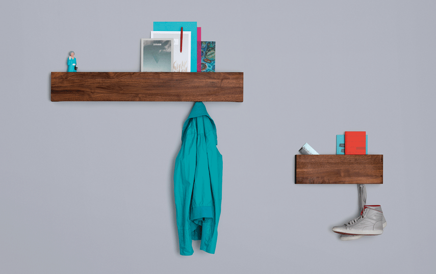 The functions ? hanging from underneath and depositing from above ? are here housed in the least possible depth. If there are no clothes are hanging, HIDE & PARK is no longer perceived as a wardrobe. The material of wood is in the foreground and is simply displayed in its most natural form.