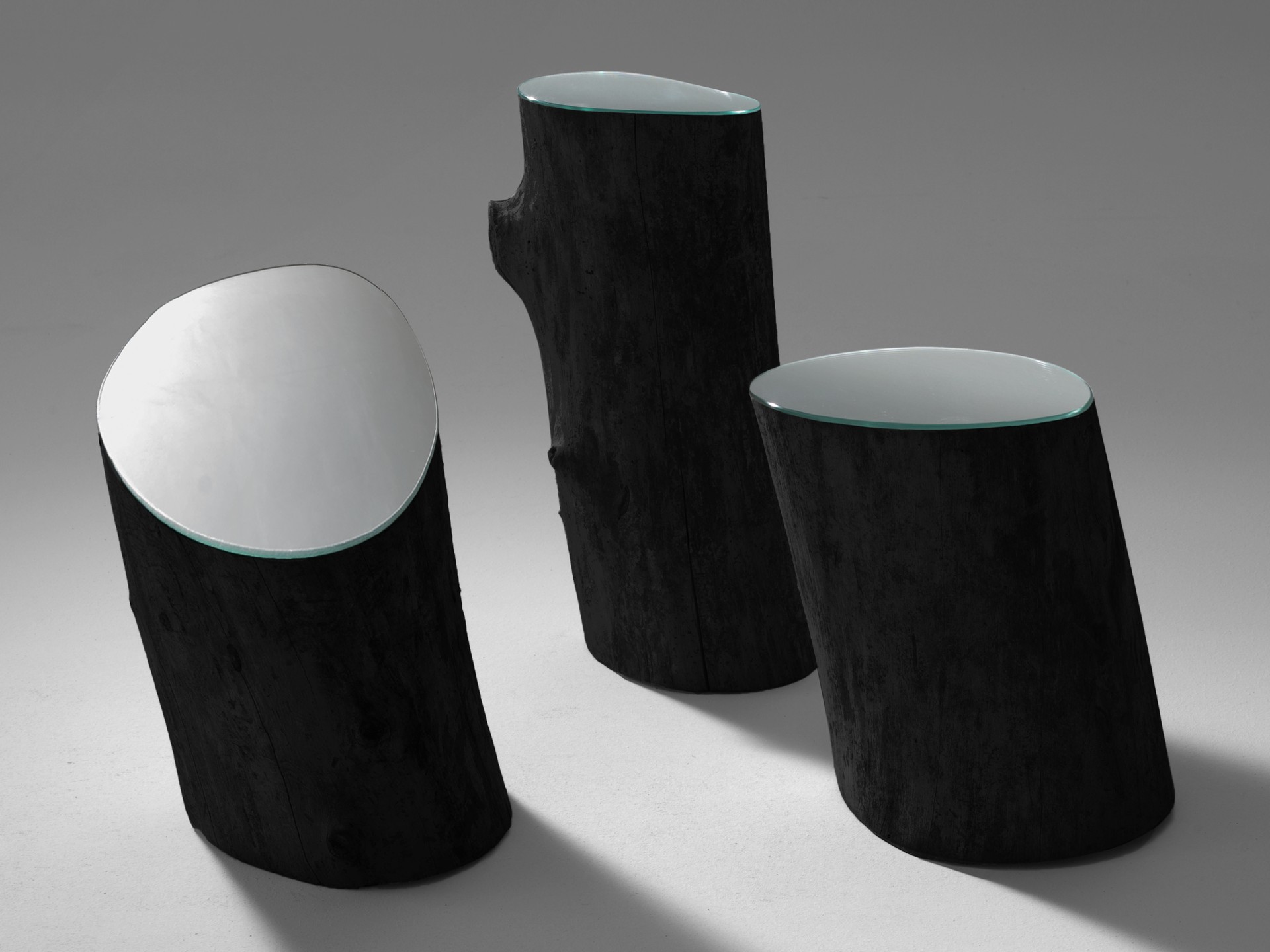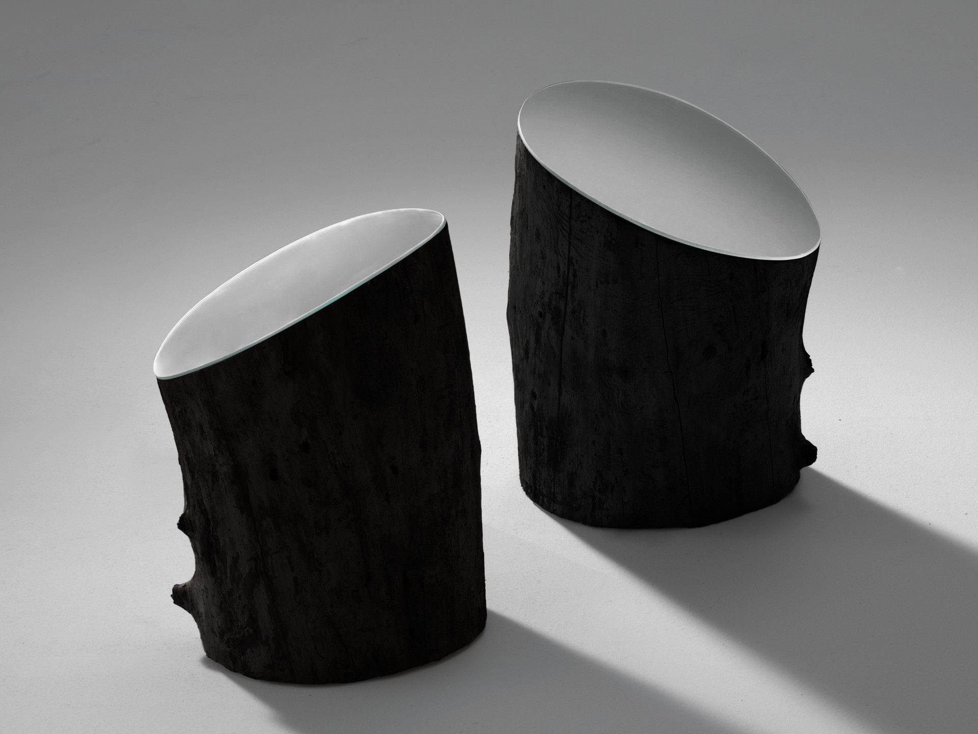 Un albero reciso che svela un segreto. Così questo specchio scultoreo si ispira alla vegetazione di una natura irreale, immaginata e scolpita nella sua versione più fantasiosa e suggestiva.