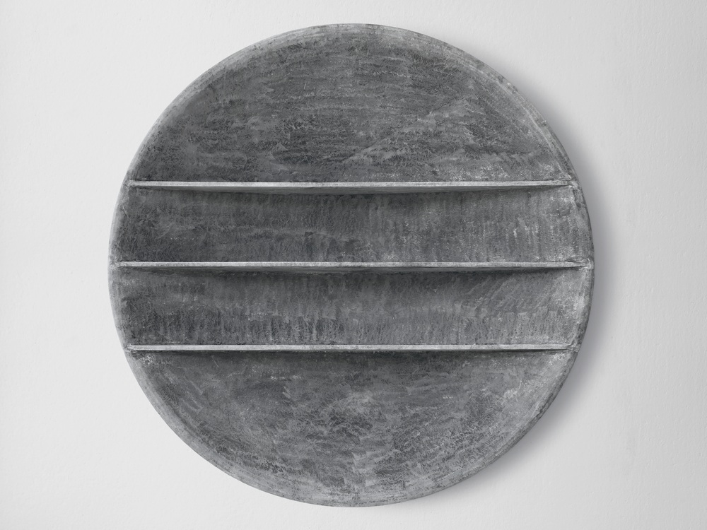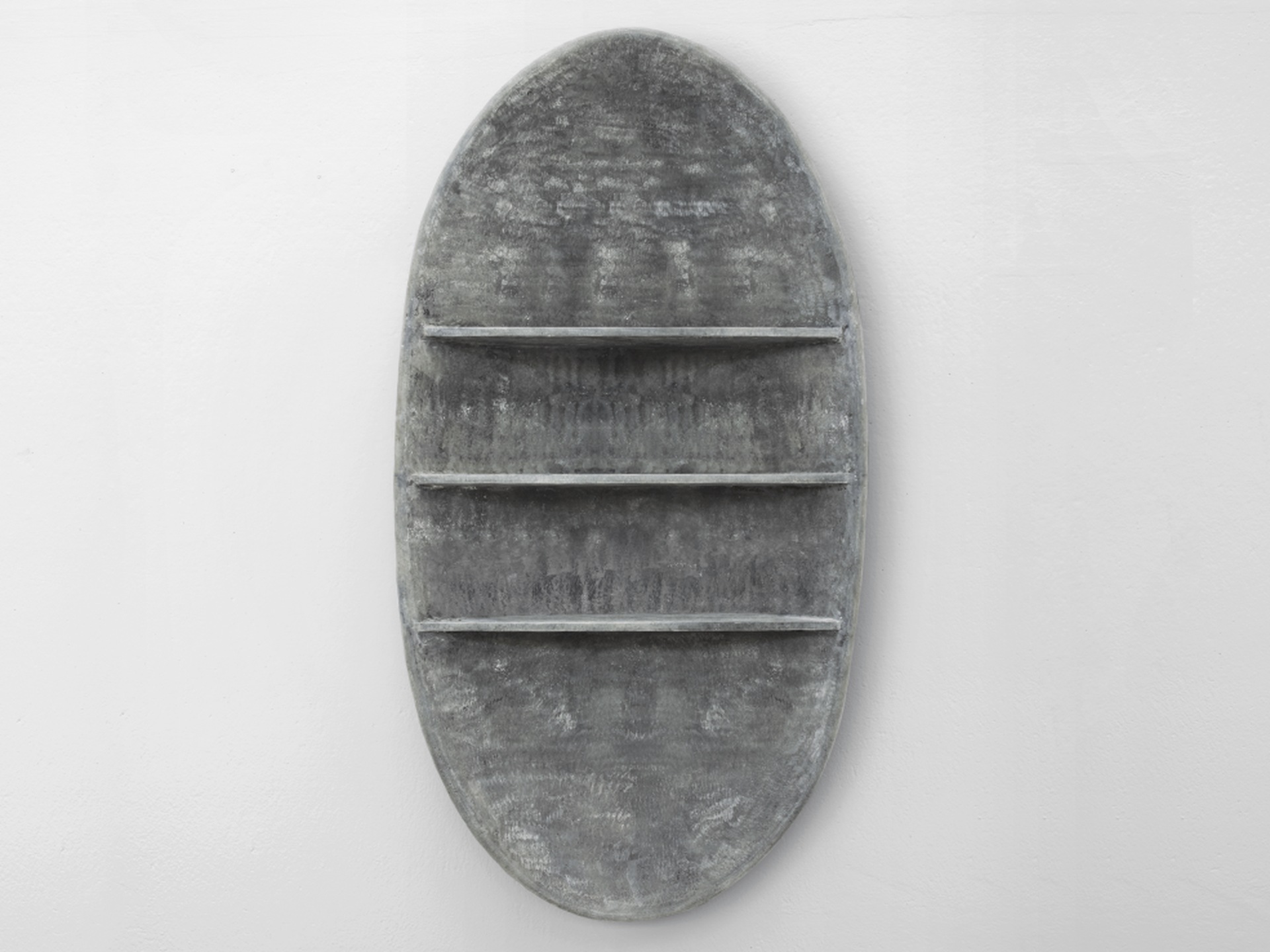 Come uno scudo antico che incanta con la sua foggia e protegge con la sua forza, questa creazione ha due anime. Ornamento scultoreo dalla forma gentile, ovale o rotonda, che si rivela libreria funzionale, grazie agli scaffali che ne fendono la superficie.
