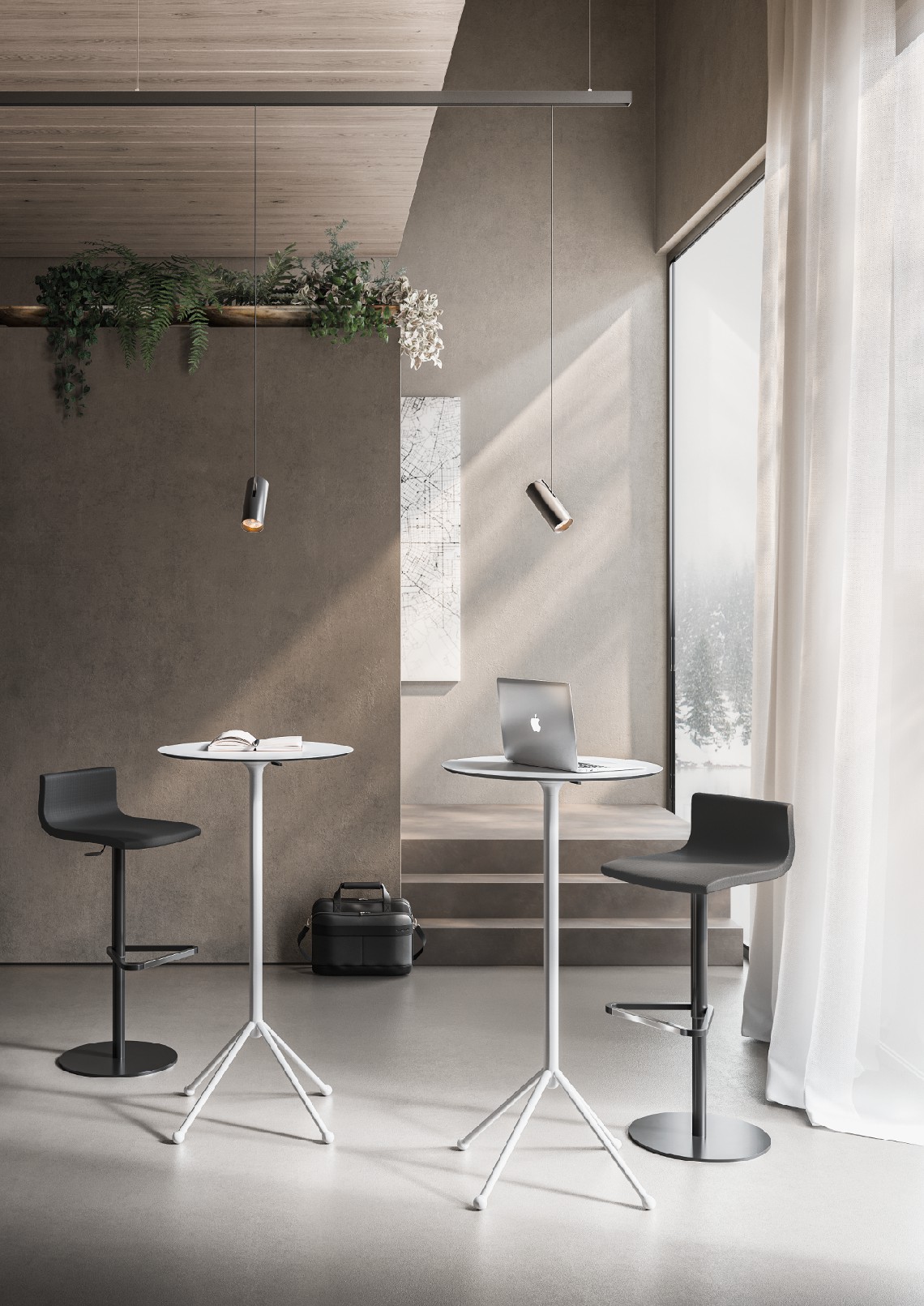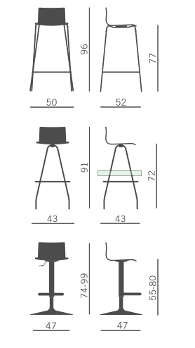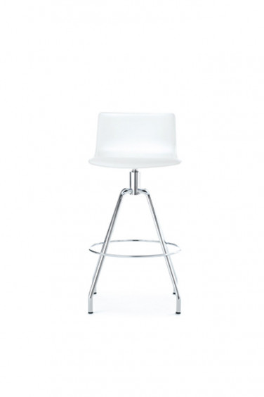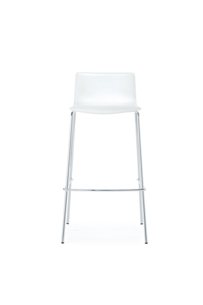 Stool in black or white saddled leather or upholstered, with fixed or swivel frames
