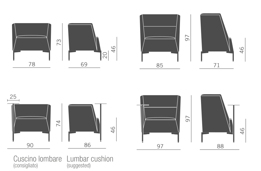 The high and medium back versions create meeting/work zones and offer an excellent acoustic comfort.